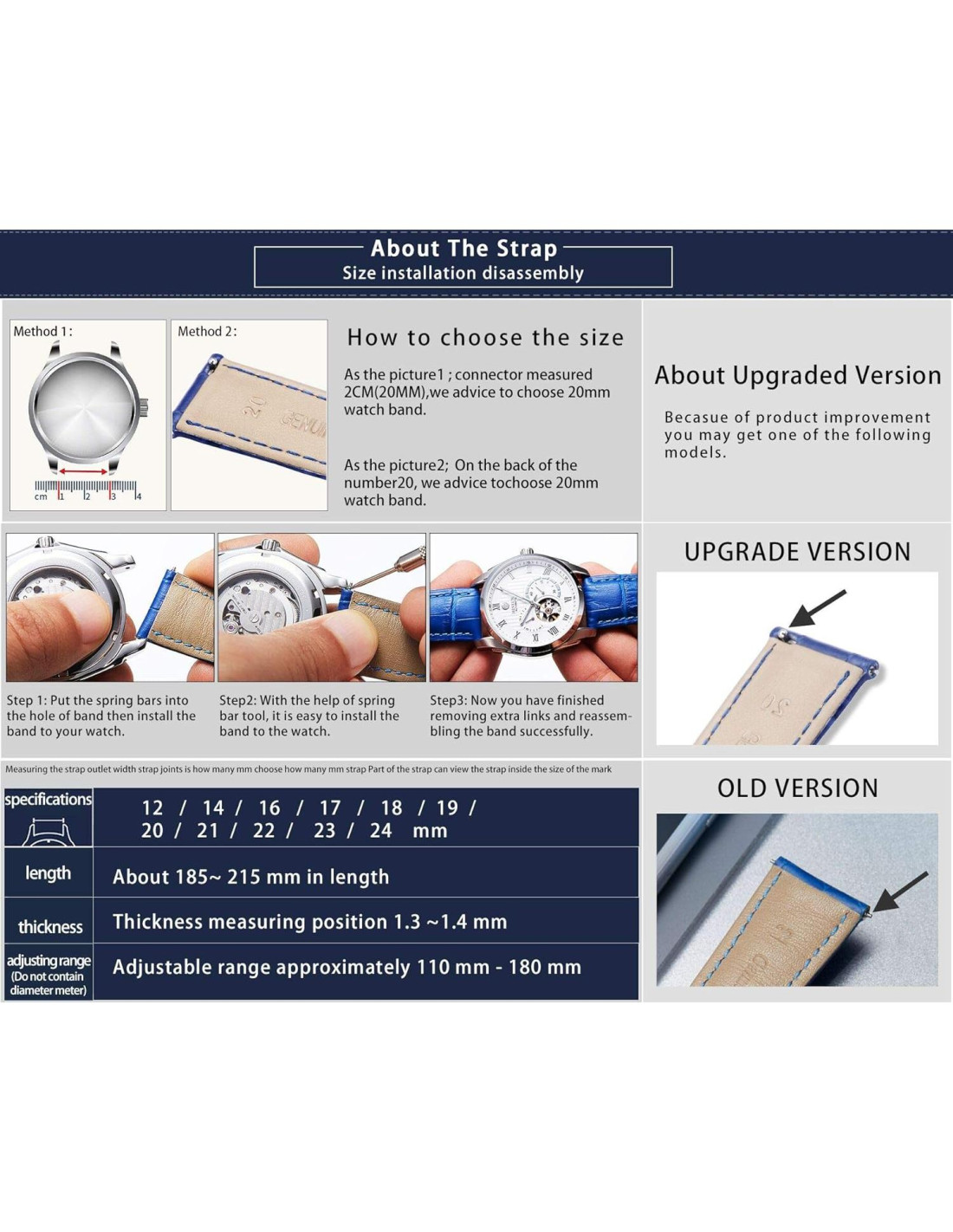 - Compatible con la Mayoría de los Relojes Correas de reloj de 12mm - 24mm de ancho son adecuadas para la mayoría de las marcas de relojes automáticos, relojes de cuarzo o relojes inteligentes.