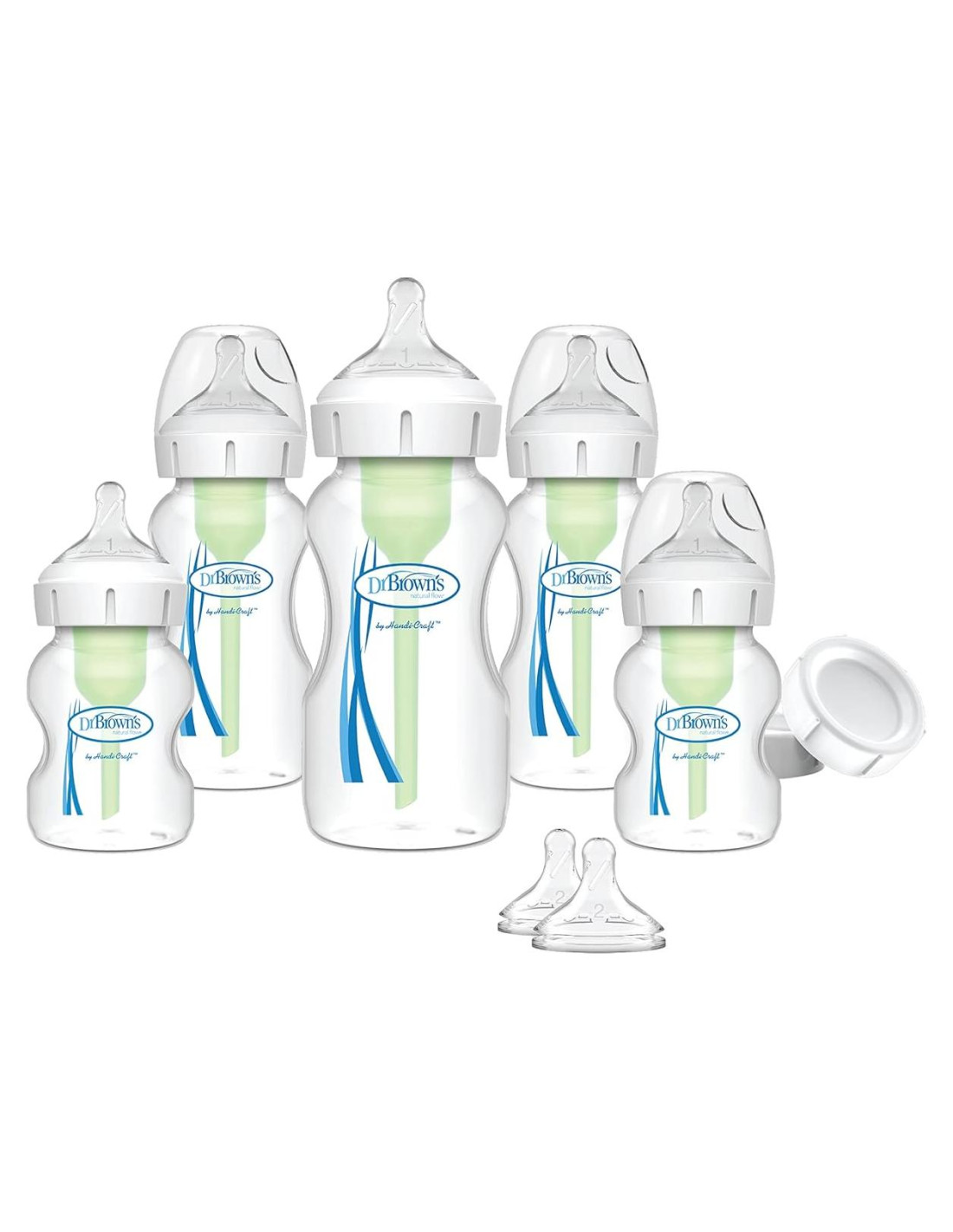 Tus opciones nunca han sido mejores con el Juego de Regalo para Bebés Dr. Brown's Natural Flow Anti-Cólico Options+ con Botellas de Cuello Ancho. El sistema de ventilación interna anti-cólico está clínicamente probado para reducir el cólico. Las botellas de Dr. Brown proporcionan una experiencia de alimentación más cómoda para el bebé al disminuir el regurgitar, los eructos y los gases. Esta alimentación sin vacío es la más cercana a la lactancia materna y los pezones de silicona de Dr. Brown proporcionan un flujo constante para que el bebé pueda alimentarse a su propio ritmo. La forma del pezón similar al pecho fomenta un agarre adecuado para una experiencia de alimentación con biberón más natural y facilita la transición de pecho a biberón y viceversa. El sistema de ventilación de Dr. Brown está probado para ayudar a preservar los nutrientes de la leche en el biberón y ayuda en la digestión para un mejor sueño nocturno. El pezón de silicona, junto con el sistema de ventilación interna, ofrecen una experiencia de alimentación con biberón confiable y segura que hace de Dr. Brown el Biberón para Bebés Recomendado por Pediatras #1 en EE. UU. Hecho para crecer con el bebé, nuestro biberón está diseñado para nutrir a través de todas las etapas de alimentación del bebé y es reciclable. Seguro para usar en lavavajillas (solo en la parte superior), esterilizadores eléctricos y de microondas o agua hirviendo. Libre de BPA.