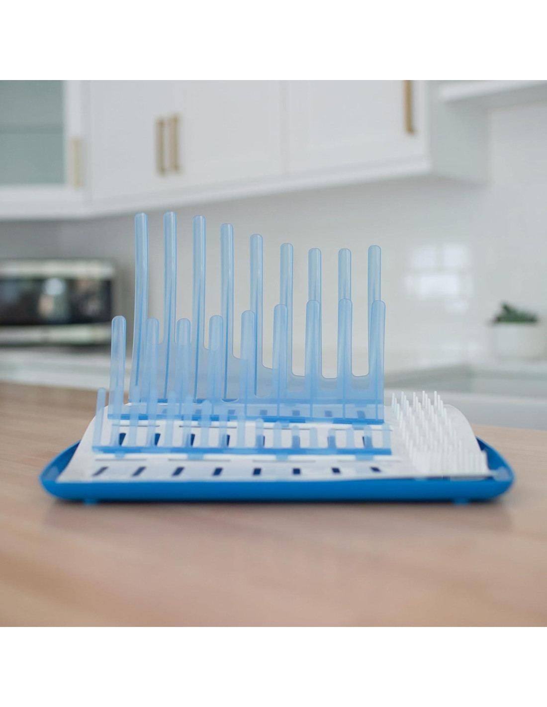 ¡Configúralo, cárgalo y pliega! El secador de biberones plegable Dr. Brown está ahí cuando lo necesitas y desaparece cuando no. Ahorra tiempo y espacio en la encimera al limpiar tus biberones y accesorios Dr. Brown con este esencial para bebés. La plataforma de secado elevada con bandeja de recolección de agua mantiene tus encimeras secas y sostiene hasta 10 biberones estrechos Dr. Brown o 8 biberones de cuello ancho Dr. Brown, y la mayoría de otras marcas también. El diseño universal se adapta a tazas, cuencos, chupetes, mordedores y mucho más. Cuando necesites espacio en la encimera, simplemente pliega y guarda. El secador es apto para lavavajillas (rejilla superior), por lo que limpiarlo es muy fácil.