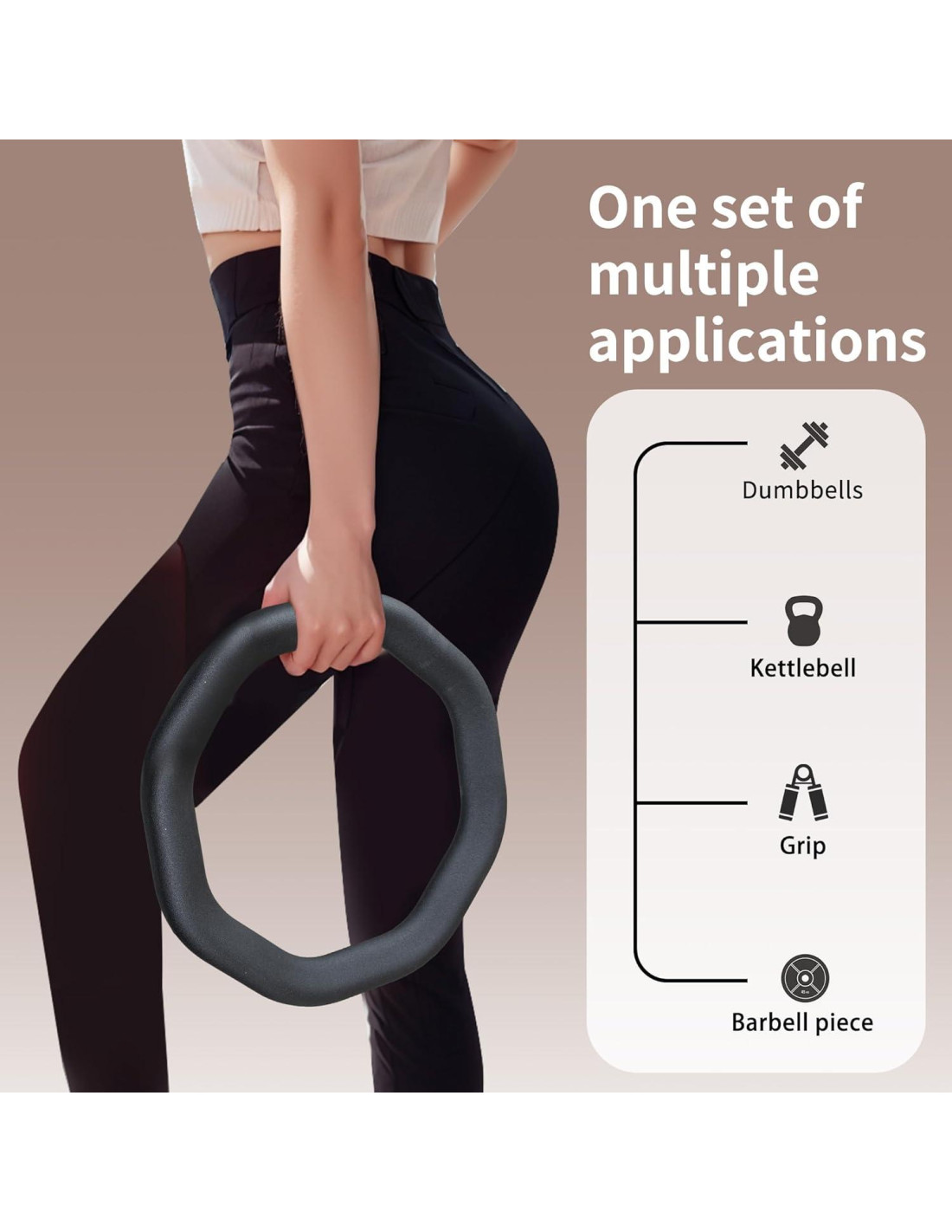 - Material: El anillo de mancuerna de potencia está hecho de hierro fundido + recubrimiento de PVC, diseño poligonal que es antideslizante al hacer ejercicio.