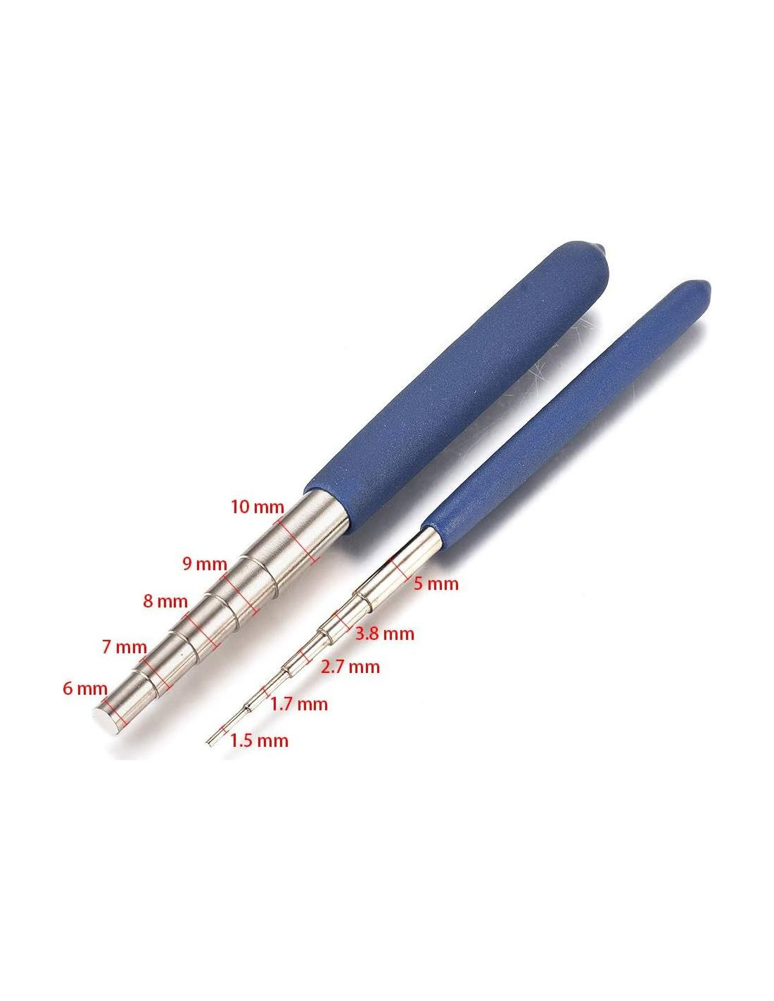 - [Presupuesto 10 Diámetros] Cada herramienta mandril tiene 5 escalones (10 tamaños) para envolver alambre, 1.5mm (0.06 pulgadas), 1.7mm (0.07 pulgadas), 2.7mm (0.11 pulgadas), 3.8mm (0.15 pulgadas), 5mm (0.20 pulgadas), 6mm (0.24 pulgadas), 7mm (0.28 pulgadas), 8mm (0.31 pulgadas), 9mm (0.35 pulgadas), 10mm (0.39 pulgadas). Satisface completamente tus diferentes necesidades de envoltura de alambre.