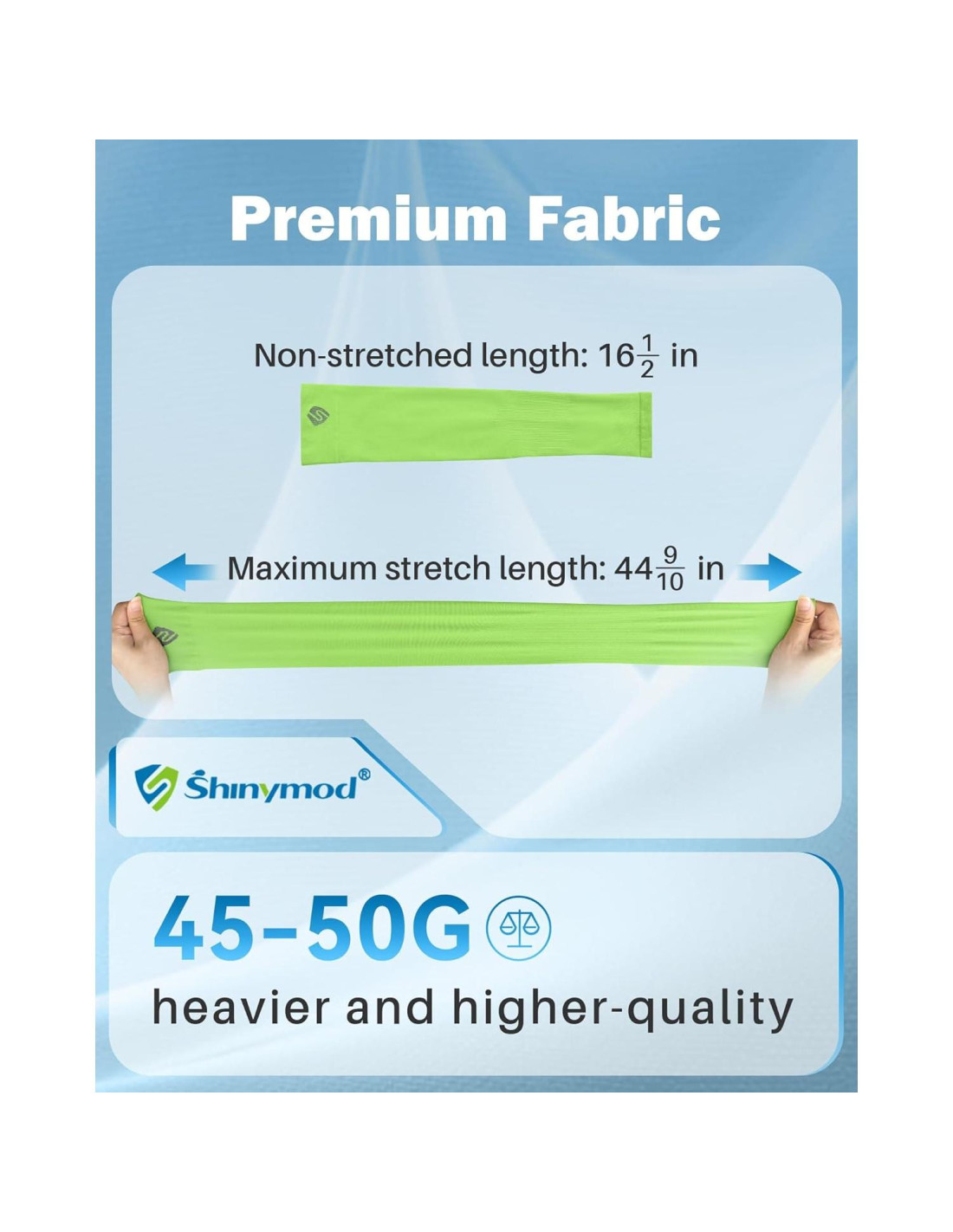 - TEJIDO SUPERIOR - Las mangas de brazo están hechas de protofilamento elástico de enfriamiento (92% poliamida, 8% spandex), alta elasticidad de 43 a 112 cm de longitud, y el diámetro puede ir de 10 cm a 21 cm, 20g más pesadas que la mayoría de las marcas.