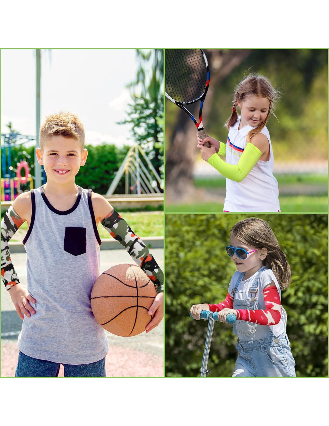 - Diseñadas para el Aire Libre: estas mangas para niños pueden ofrecer protección para niños y niñas cuando participan en varios tipos de actividades al aire libre, como correr, pescar, hacer senderismo y más, adecuadas para la mayoría de los deportes también, como baloncesto, béisbol, voleibol y así sucesivamente, prácticas en la vida diaria