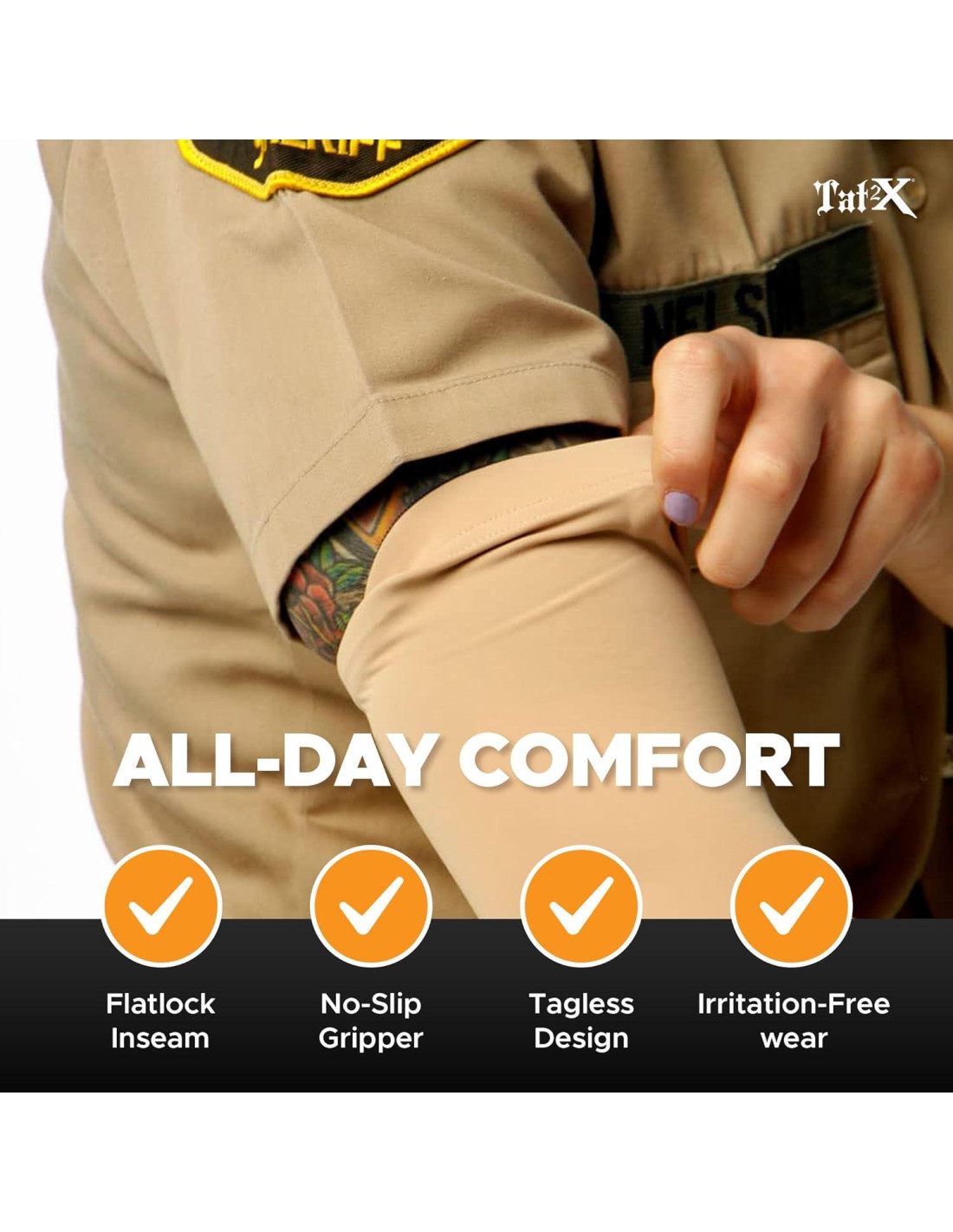 Tat2X fue fundada en 2008 por Mo Nelson. Nuestro enfoque es ayudar a los profesionales que trabajan a seguir disfrutando de su amor por los tatuajes mientras mantienen los estándares profesionales que se requieren en sus trabajos. Las mangas cubiertas de tatuaje Ink Armor están orgullosamente Hechas en EE. UU. y han sido diseñadas desde cero. Cada detalle ha sido perfeccionado a lo largo de los años desde la cuidadosa selección de nuestra mezcla de telas hasta la calidad que se invierte en nuestra costura. Las mangas Ink Armor son las más cómodas que jamás usarás y el agarre elástico antideslizante en la parte superior de cada manga asegura que se mantengan en su lugar todo el día. Ink Armor es un producto que no solo es funcional para los profesionales que necesitan cubrir sus tatuajes, sino que también proporciona protección del sol. La mezcla de tela utilizada para las mangas cubiertas de tatuaje Ink Armor te brinda una increíble protección solar con UPF 50+.