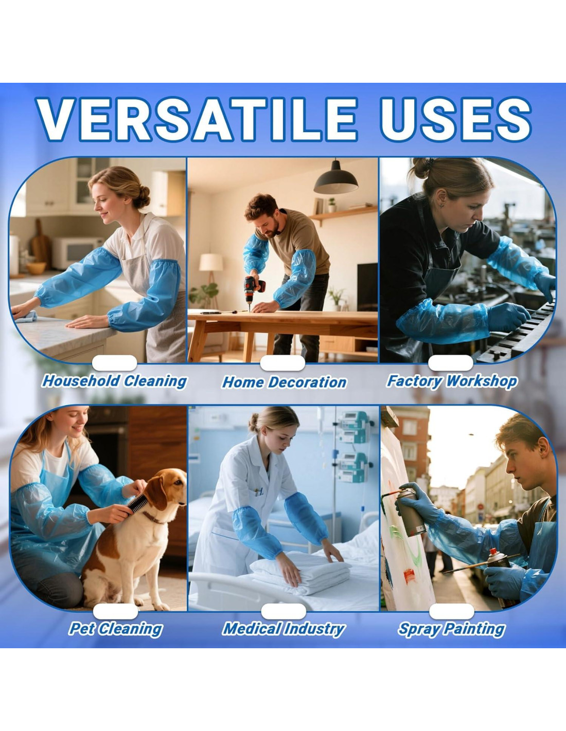 - Amplia aplicación: Nuestros protectores de mangas desechables son adecuados para limpieza en el hogar, trabajo en la cocina, manipulación de alimentos, jardinería, coloración de cabello, cuidado de uñas, tareas de laboratorio, pintura y más. Estas mangas de plástico proporcionan una solución de protección eficiente y conveniente