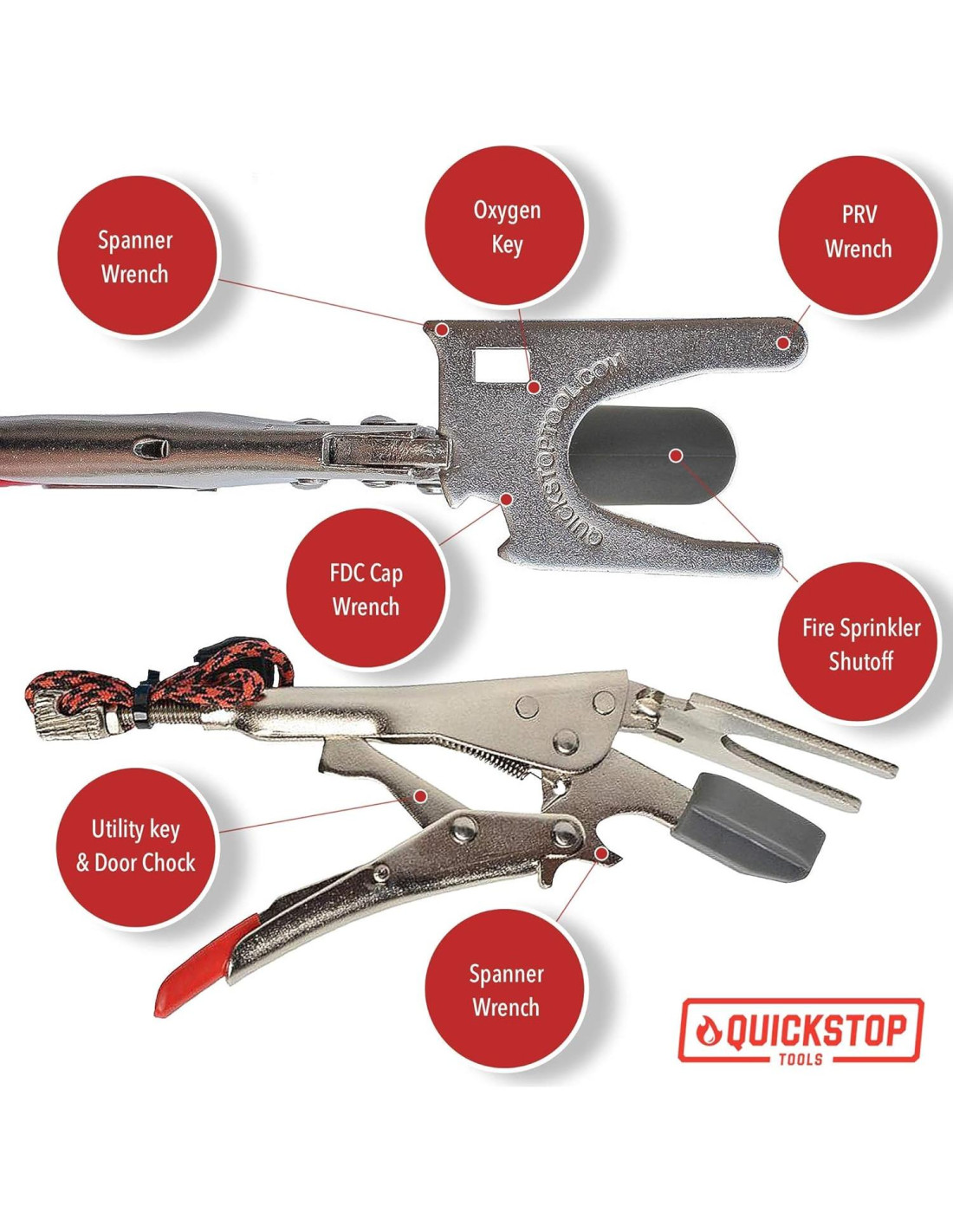 - HERRAMIENTA INDISPENSABLE PARA TENER EN CASA O EN LA OFICINA: La Multi-herramienta Quickstop es la PRIMERA Y ÚNICA herramienta de apagado de rociadores de incendio multiuso que proporciona a los bomberos 7 herramientas diferentes que necesitan para manejar incendios comerciales y de gran altura. La herramienta se puede usar para 1) detener rociadores de incendio 2) quitar tapas de FDC 3) hacer conexiones de tuberías de pie 4) apagar servicios residenciales 5) ajustar presiones del sistema (PRV) 6) abrir cilindros de oxígeno, y 7) mantener puertas abiertas