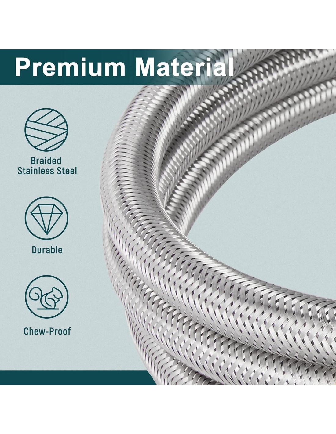 - Material mejorado: Trenzado de acero inoxidable para mejor protección contra animales que muerden, más resistente que las mangueras de goma