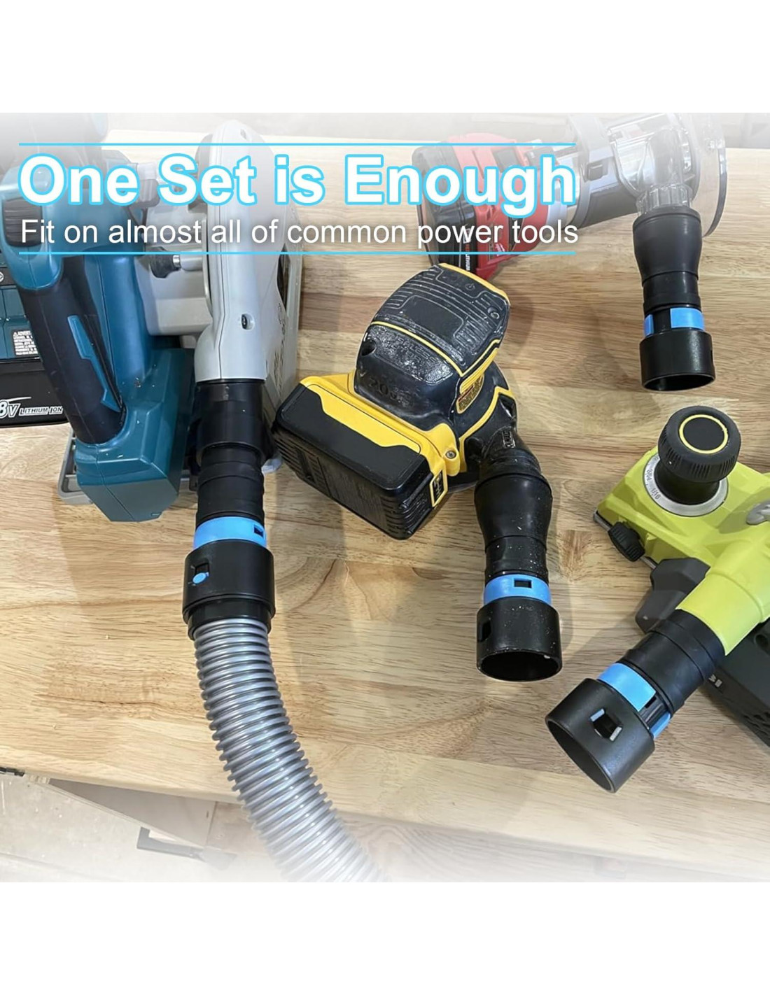 - Obtenga Uno, Obtenga Todo El kit de manguera de aspiradora está diseñado para adaptarse a casi todas las principales marcas de herramientas eléctricas de carpintería, incluyendo Milwaukee Electric, Festool, Dewalt, Ryobi, Makita, Skill Bosch, Porter Cable, Hitachi, Fein y Cobalt. El extremo del tanque se adapta a todas las principales marcas de aspiradoras de taller, incluyendo Shop Vac, Vacmaster, Ridgid, Craftsman, Dewalt, John Deere y muchas marcas privadas típicas de la conexión de aspiradora de 2-1/4".