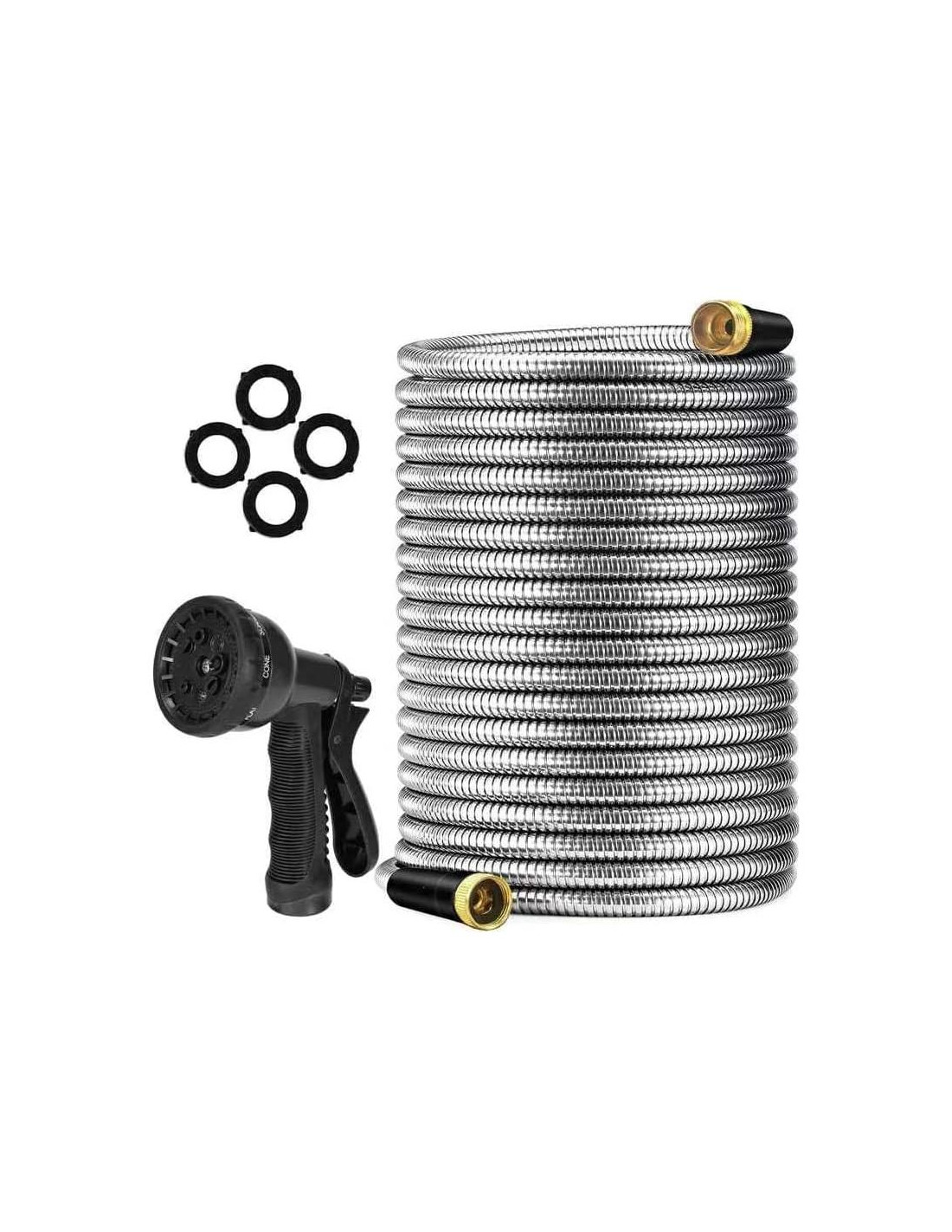 - Manguera de jardín de metal: Hecha de acero inoxidable de alta calidad y gran resistencia, esta manguera de jardín presenta un diseño de espiral entrelazada para una durabilidad y flexibilidad extremas. Perfecta para todas tus necesidades de jardinería.