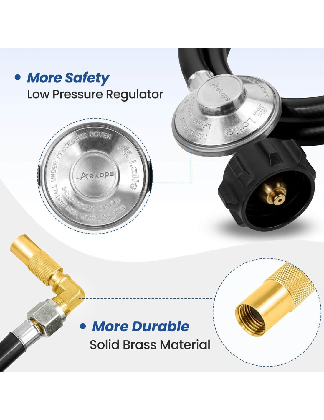 - [Satisfacción en el Servicio Postventa] 100% Reembolso. Si tienes alguna pregunta con la manguera de propano para la plancha blackstone, por favor contáctanos, Aekops te proporcionará una satisfacción postventa.