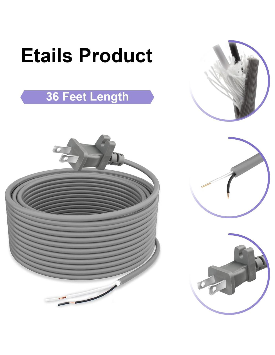- Detalles del producto: Entrada: 125V 12A enchufe polarizado AC, calibre de cable 17AWG longitud 36 pies (10.97 metros) Le permite no estar limitado por la longitud del cable de alimentación, fácil de instalar y conectar para usar.