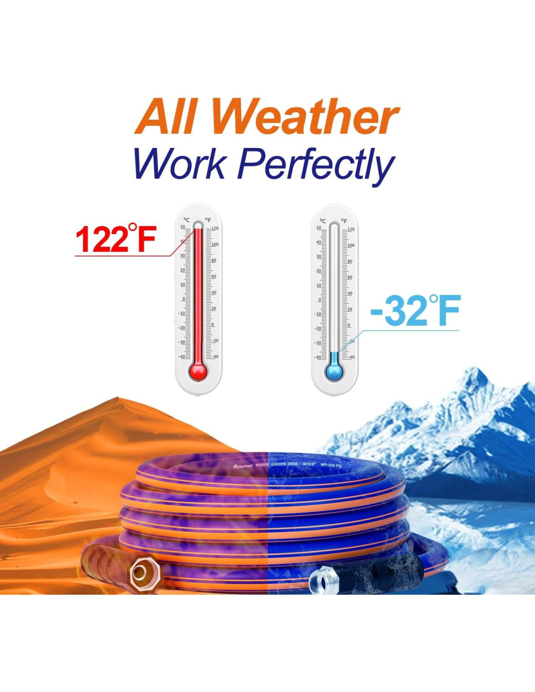 - SUPER FLEXIBLE Nuestra manguera de agua es una mezcla especial de 70% caucho y 30% PVC. Funciona muy bien en cualquier clima, desde el frío extremo a -35,6 C hasta el calor abrasador a 50 C