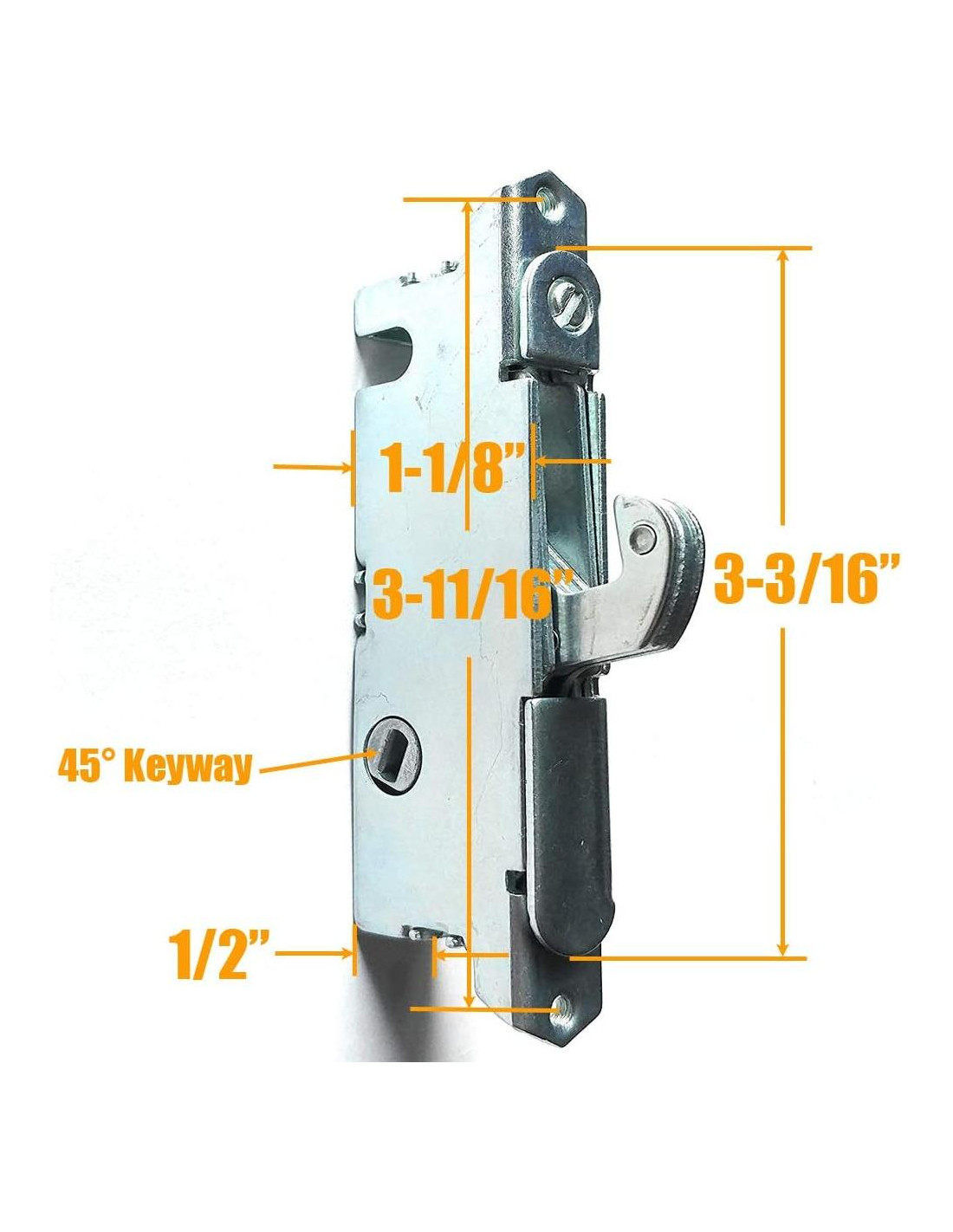 - [INCLUYE] : Manija interior, Tirador exterior, Cerradura de mortaja, Pestillo, 6 Tornillos. Juego de manijas estándar reversible, no direccional que se puede montar en puertas de patio deslizantes tanto de mano izquierda como de mano derecha. Cerradura de mortaja de 45 que se puede usar en puertas de patio deslizantes construidas de madera, aluminio y vinilo. No necesitas comprar otros componentes si obtienes nuestro juego de manijas.