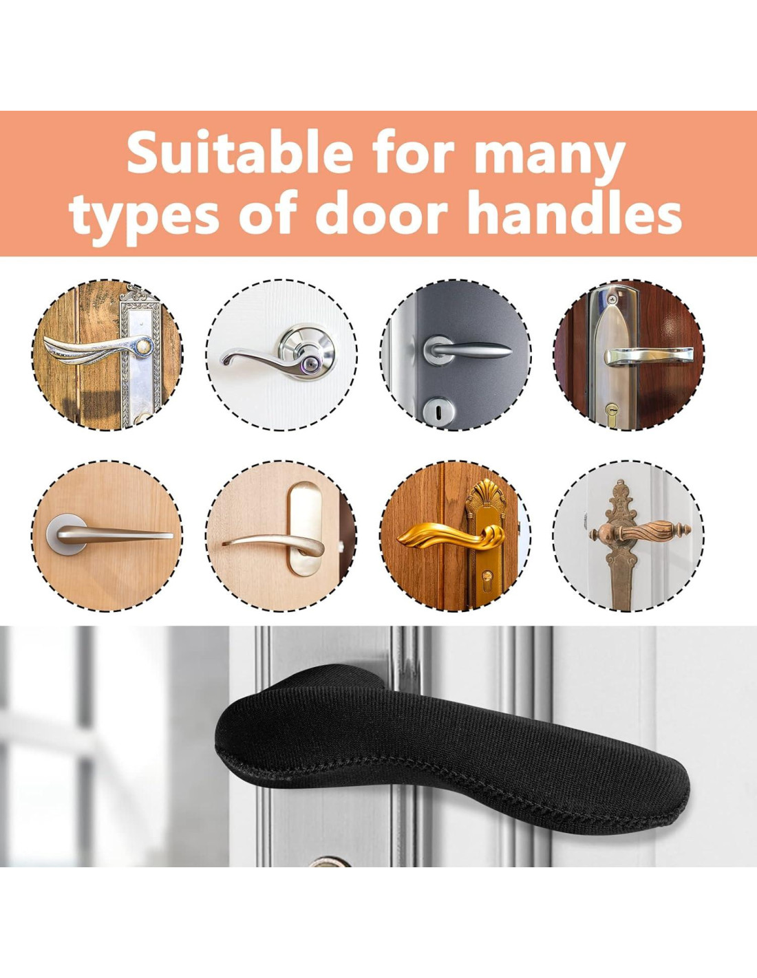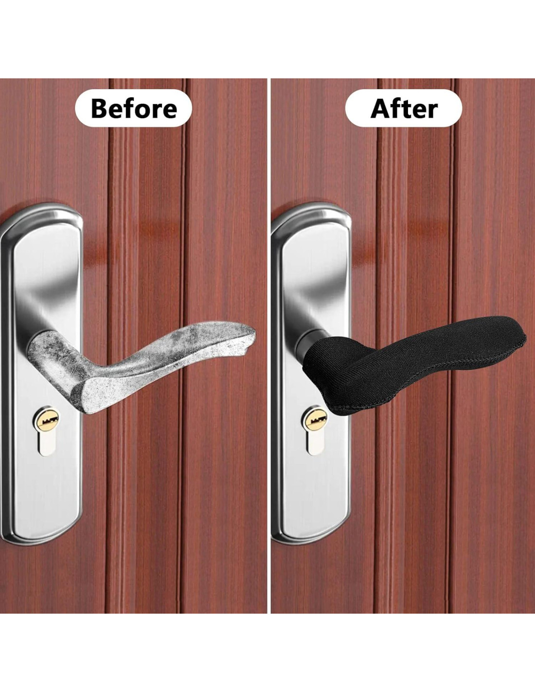 - Embalaje - El paquete incluye 4 protectores de manijas de puerta, el material de goma neopreno elástico asegura un ajuste seguro, evitando que la cubierta se deslice.