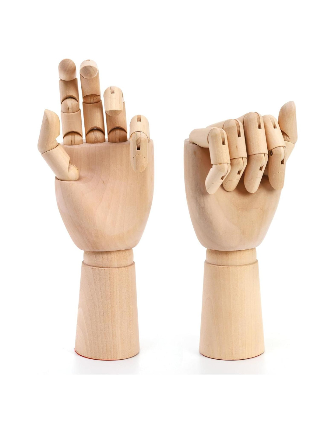 - El paquete incluye 1 mano izquierda de madera y 1 mano derecha de madera. Cada mano de madera mide 11.4" H x 3.3" W x 2.2" de grosor, el diámetro de la base es de aproximadamente 2.3". Manos de maniquí flexibles y atractivas para estudiantes que dibujan, esbozan o decoración de hogar y oficina.