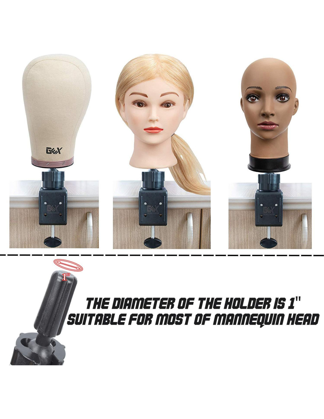 - ESPECIFICACIÓN: Adecuado para el borde de mesa o mostrador de menos de 1.2" (3.05 cm). Material: Hierro en el interior, muy resistente. El diámetro del soporte para la cabeza es de 1 pulgada (2.54 cm), se adapta principalmente a cabezas de maniquí.