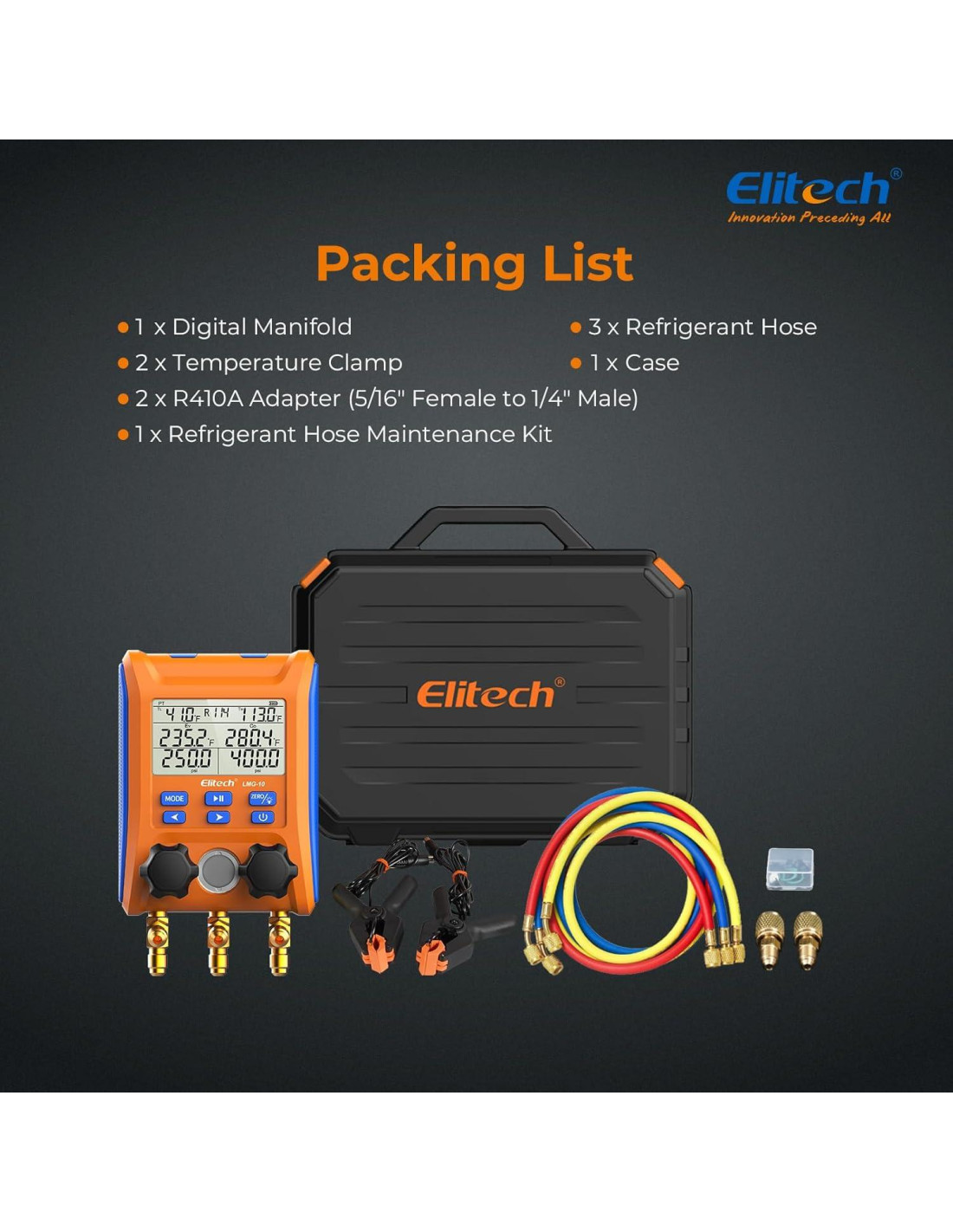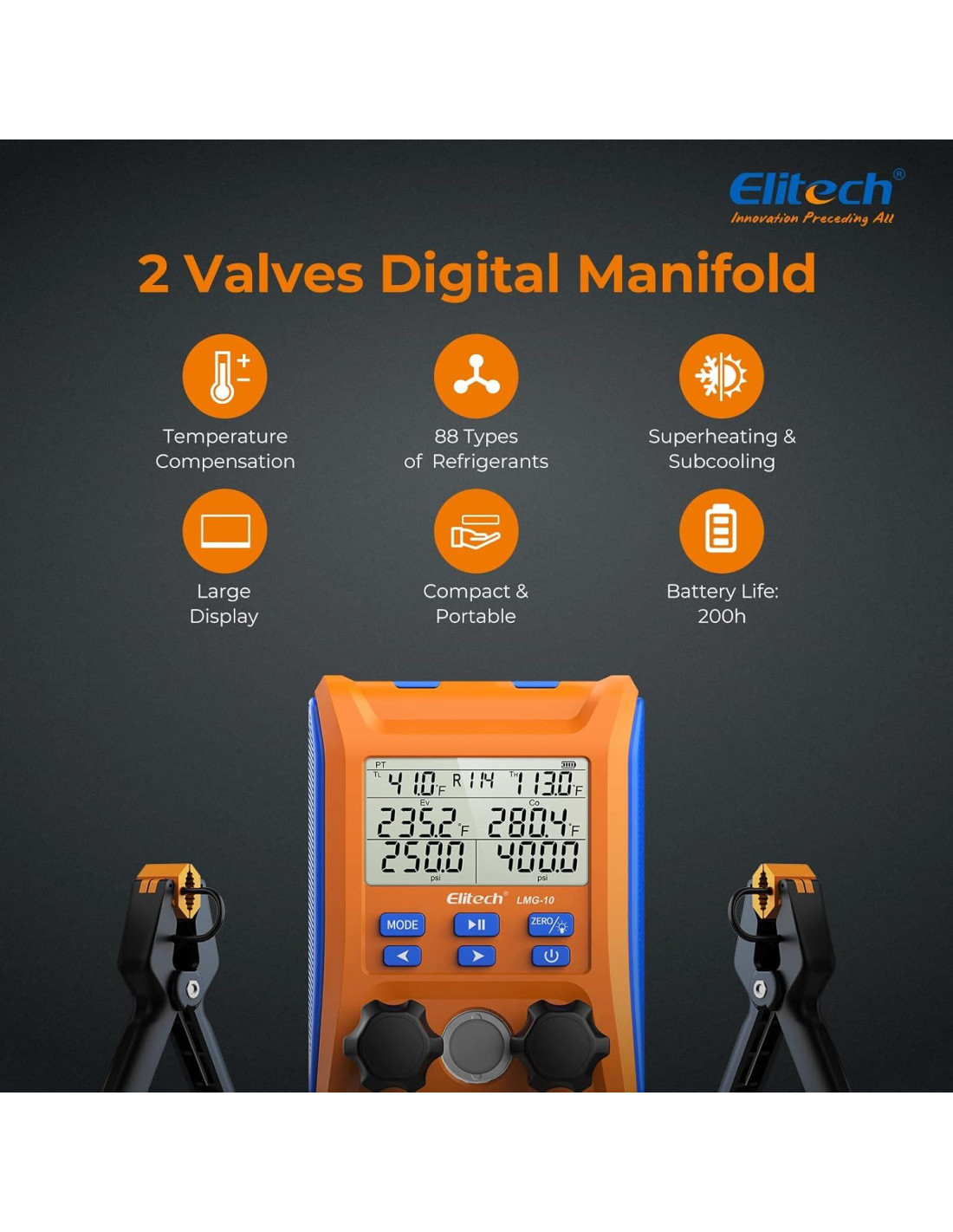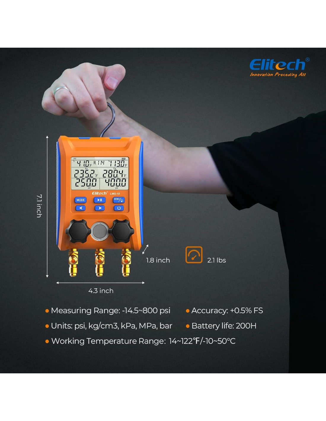 - ASEQUIBLE PERO FUNCIONAL: Elitech LMG-10 es una combinación de funciones completas y precios favorables. Está diseñado para proporcionar a los clientes de HVAC la mejor experiencia de producto y el precio más asequible.