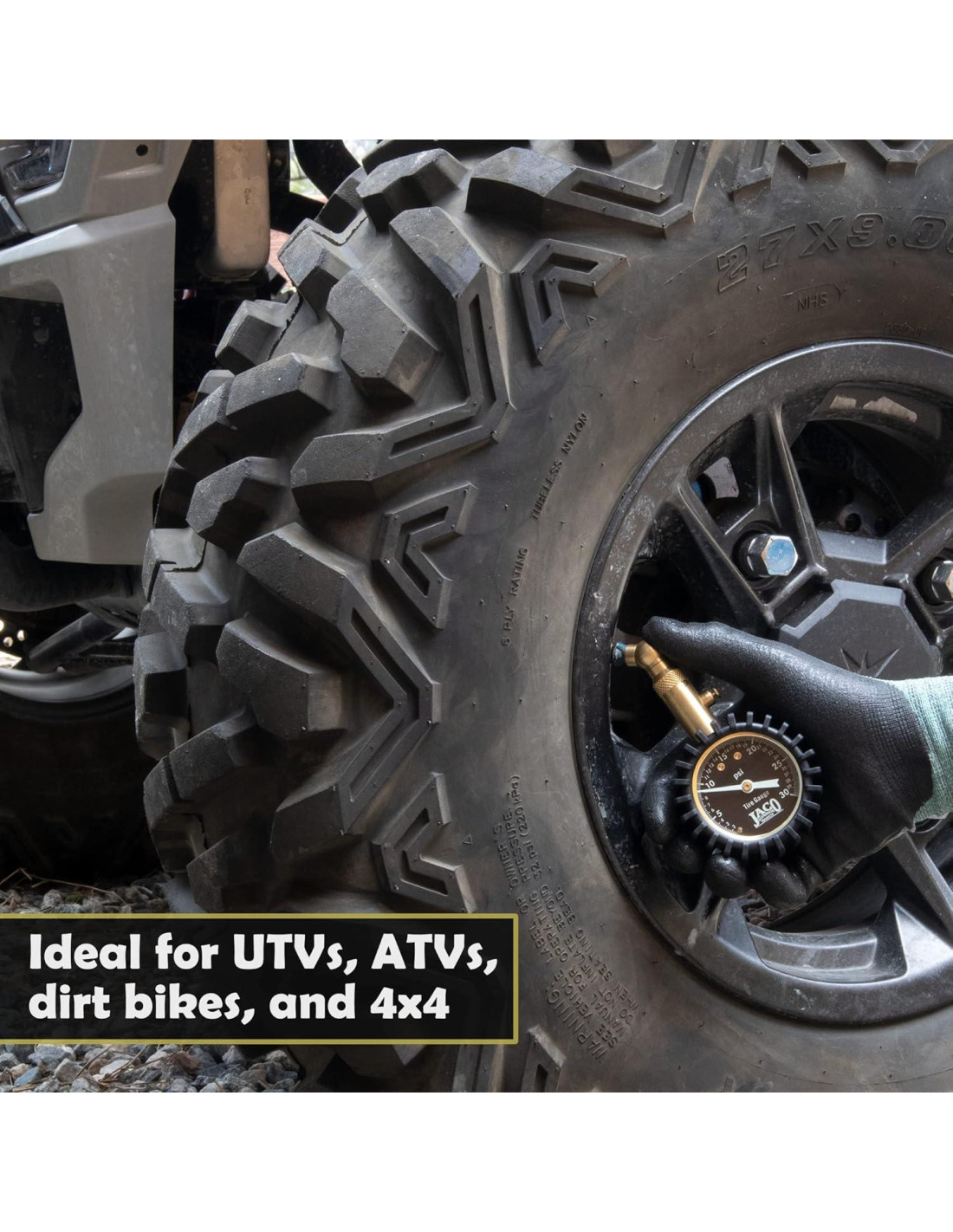 - Pruebas de rendimiento y calibración precisas según los estándares ANSI (+/-1.5%), asegurando lecturas precisas de presión de neumáticos de baja PSI sin depender de baterías; diseñado para los neumáticos de baja presión de tu ATV, UTV, moto de cross, tractor o vehículo todoterreno