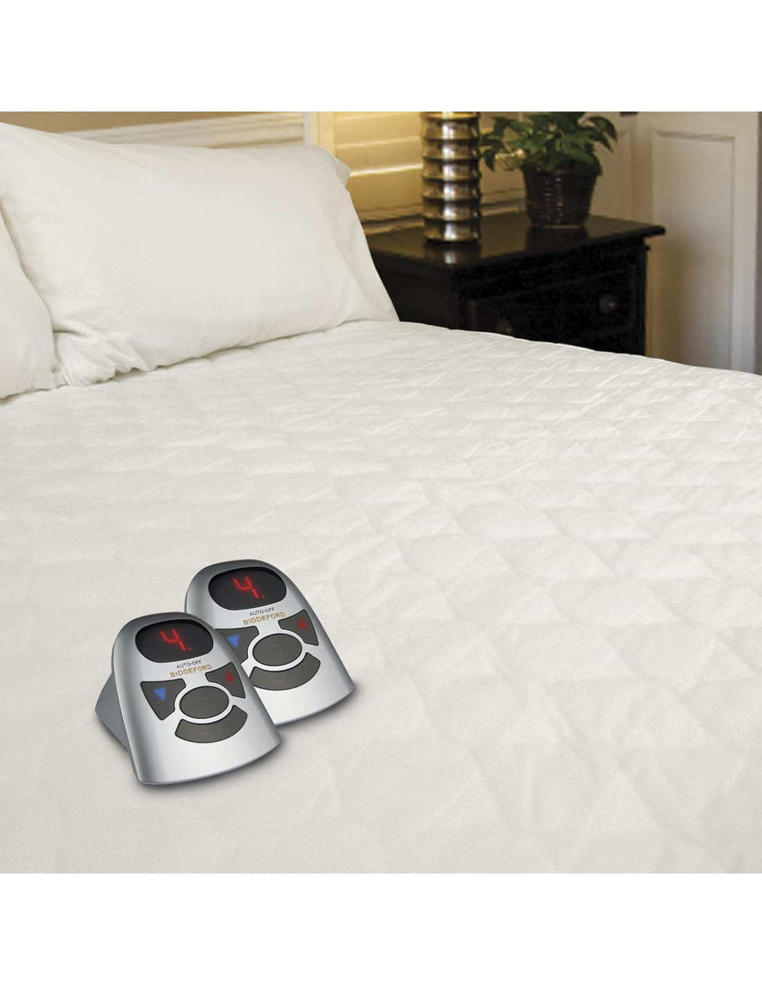 ¡No más entrar en una cama fría! Mantente caliente mientras duermes en esas frías noches de invierno con este colchón térmico eléctrico acolchado de 6 onzas de Biddeford. Este es el producto definitivo para mantener tu cama caliente en esas largas y frías noches de invierno. El controlador digital te permite controlar perfectamente la cantidad de calor que deseas al ofrecer 10 configuraciones de calor. Las medidas twin y full vienen con un controlador; las medidas reina y king vienen con dos controladores para zonas de calor duales que proporcionan comodidad individual. También cuenta con un apagado automático de 10 horas para mayor seguridad. Este colchón térmico eléctrico es lavable a máquina y se puede secar y viene con una garantía de 5 años. Ofrece la manera perfecta de precalentar tu cama antes de acostarte por la noche y luego ajustar el nivel de calor para un sueño cómodo. Baja tu termostato y enciende tu colchón térmico para ahorrar en costos de calefacción.