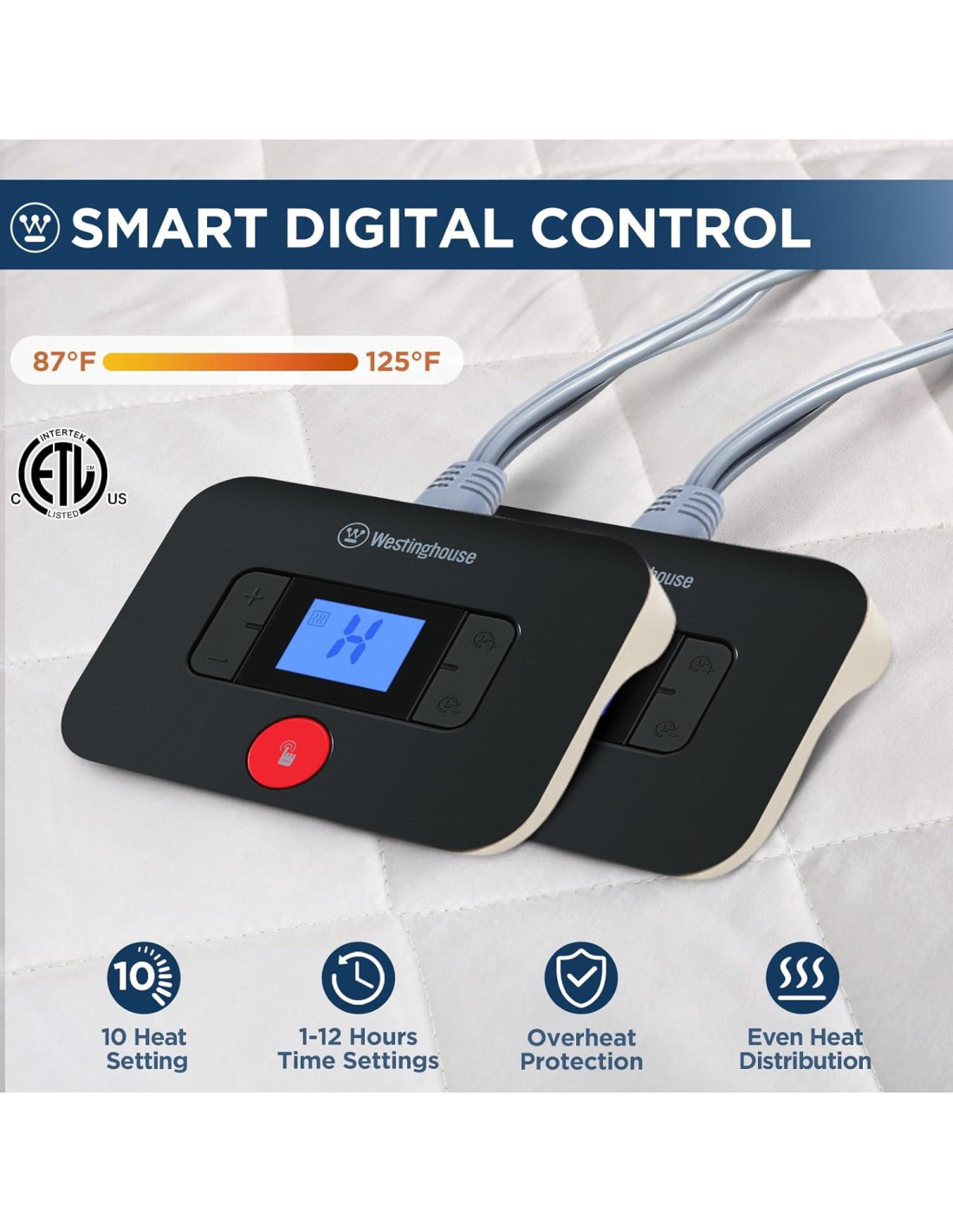 - [TELA DE ALTA CALIDAD] La almohadilla térmica queen size de Westinghouse está hecha de suave y cómodo tejido de terciopelo durazno, que es súper suave, cómodo, amigable con la piel y transpirable, saludable, y puede estar en contacto directo con la piel. La tecnología de acolchado de tela de tres capas y un diseño más razonable del cable calefactor distribuyen el calor de manera uniforme, evitan el sobrecalentamiento local y resisten eficazmente la acumulación de electrostática y la radiación electromagnética, permitiéndole usarla con tranquilidad