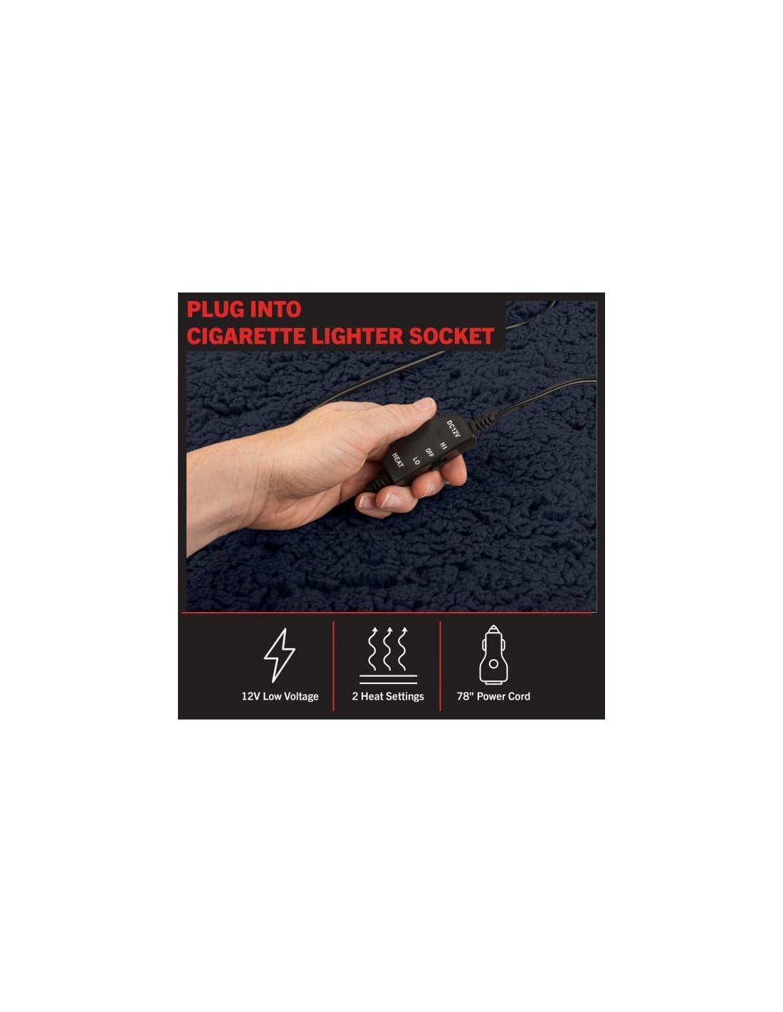 - LISTO PARA VIAJAR - Cada manta calefactora es alimentada por la salida auxiliar de 12V de tu vehículo, con un cable de 78 pulgadas (198 cm) que permite que esta manta calentada portátil alcance el asiento delantero o trasero. Usa estos esenciales de viaje en auto durante un viaje diario, tailgate o viaje por carretera.