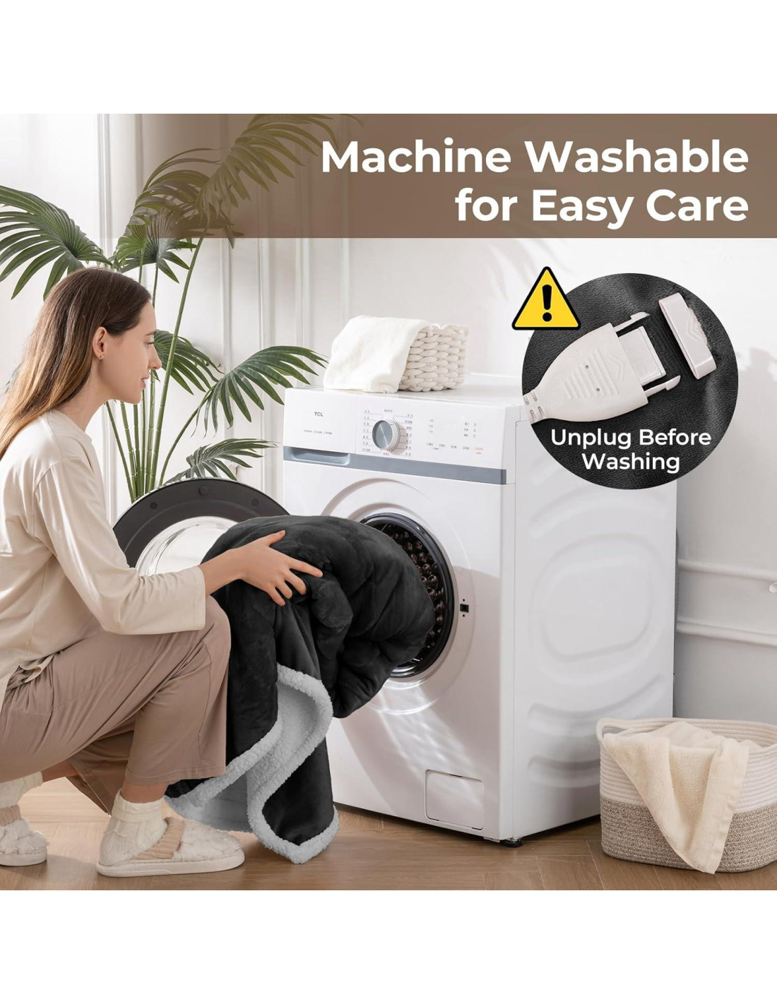 - LAVABLE A MÁQUINA - Un cable de alimentación desmontable hace que esta manta térmica sea fácil de limpiar. Viene en un empaque elegante, lo que la convierte en un regalo considerado para Navidad, cumpleaños o noches acogedoras en casa
