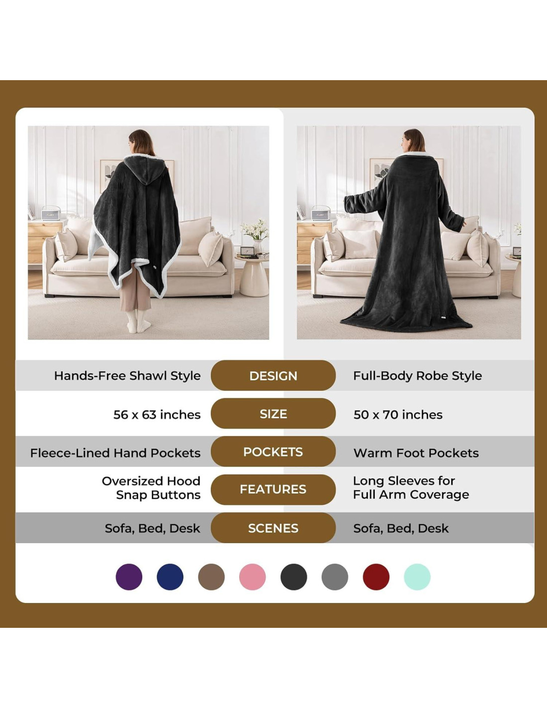- COBERTURA TOTAL DEL CUERPO - Midiendo 50" x 70" (127 x 178 cm), esta bata térmica cuenta con mangas largas y un bolsillo para pies forrado de felpa de 18" (45.72 cm) para mantener todo tu cuerpo caliente - incluyendo tus pies. Diseñada como una manta térmica portátil, ofrece un ajuste relajado y total movilidad. El diseño abierto permite usarla al revés, manteniendo tus manos libres - perfecta para descansar, dormir o trabajar en tu escritorio