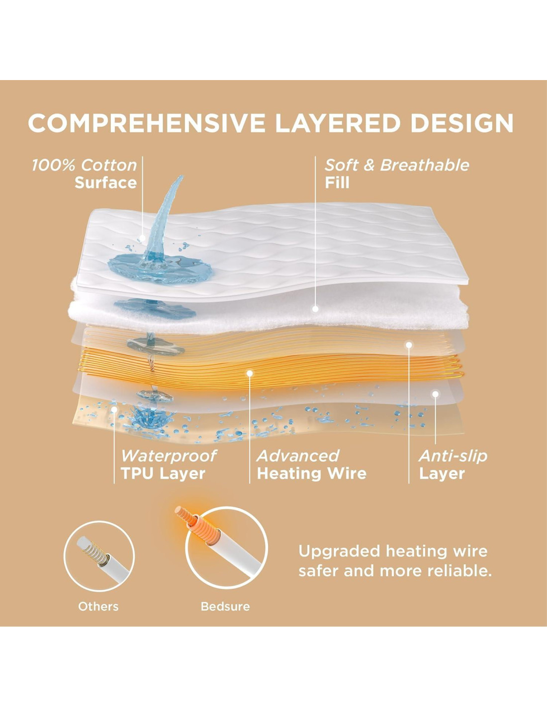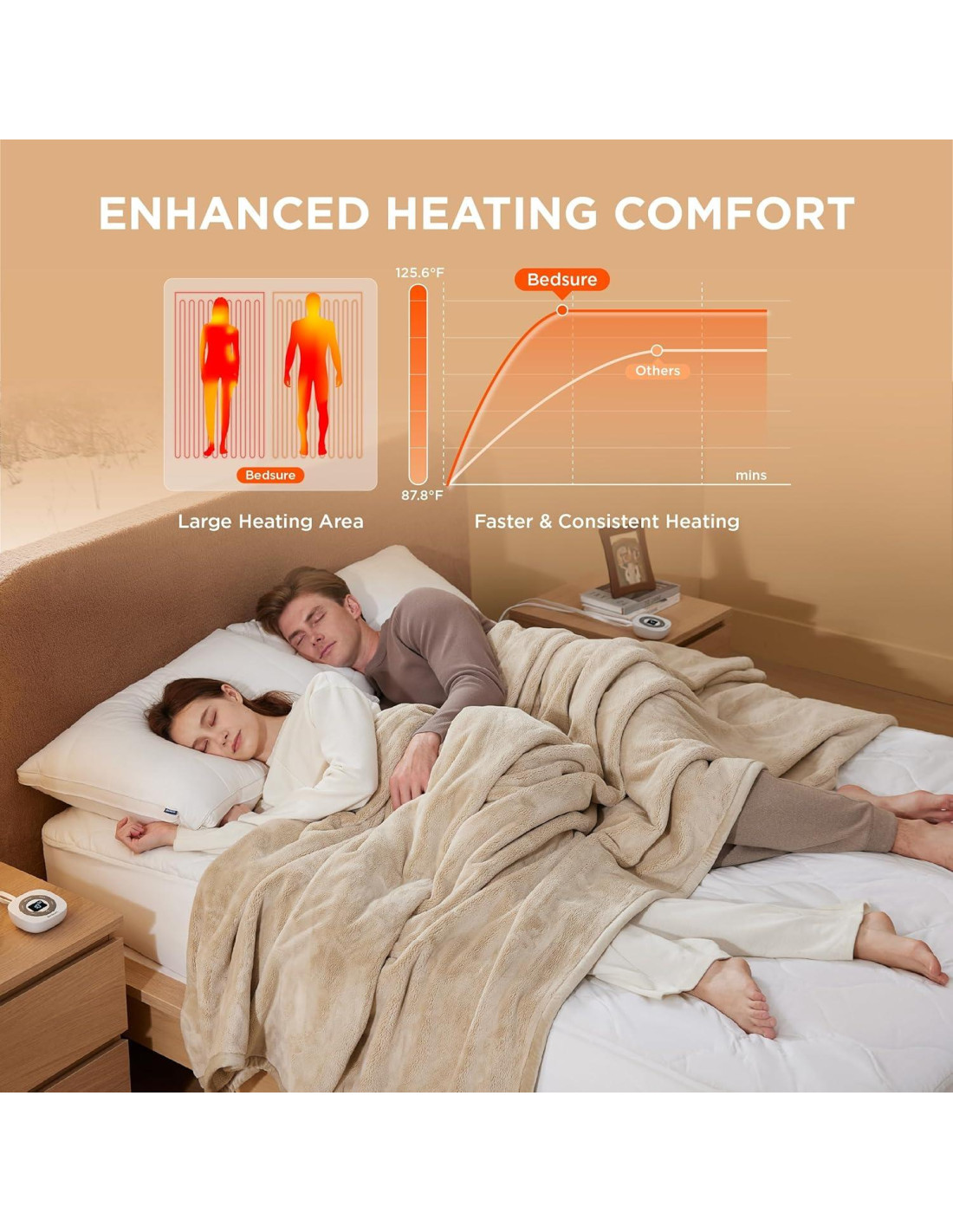 - Más seguro y confiable: Realizado en el laboratorio satelital reconocido por Intertek de Bedsure, 74 pruebas de seguridad con estándares que superan UL aseguran un rendimiento más seguro. Este calentador de cama está certificado por ETL y FCC, y su apagado automático predeterminado de 8 horas evita el sobrecalentamiento para que puedas disfrutar del calor con total tranquilidad