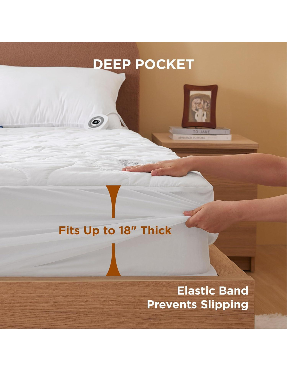 - Conveniente: Este cubre colchón calefaccionado tiene una capa impermeable de TPU, protegiendo tu colchón de daños por líquidos. Se puede estirar fácilmente hasta 18" (45.72 cm) de profundidad, con la banda elástica asegurando el cubre colchón en su lugar sin moverse ni desplazarse