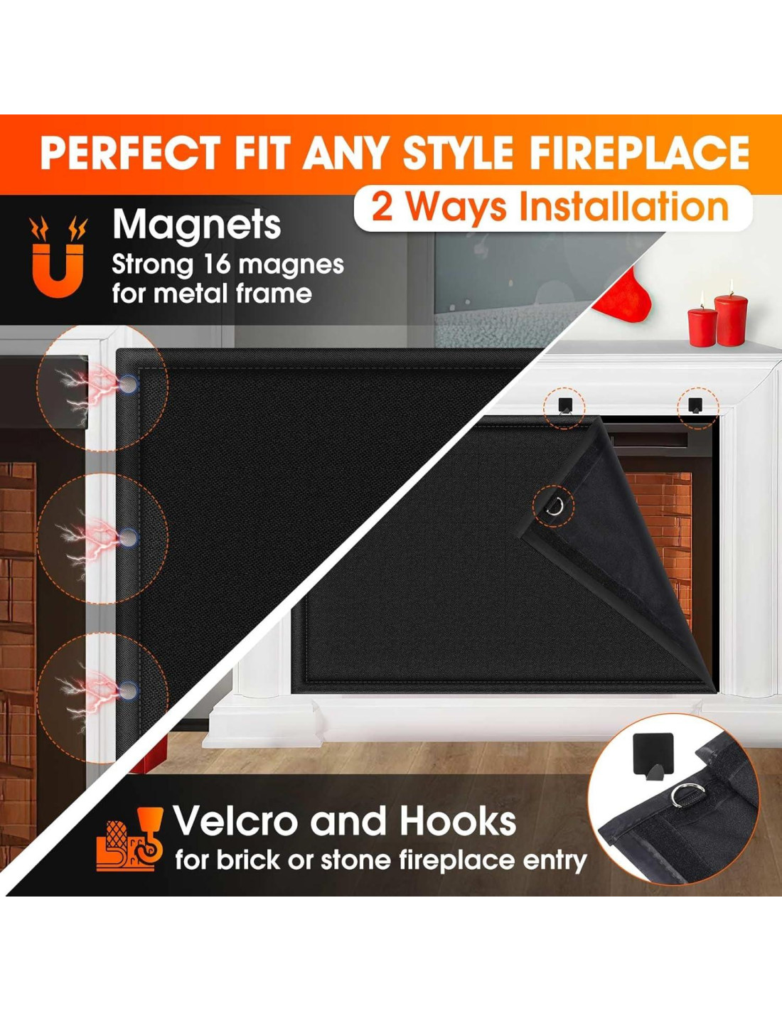 - ACTUALIZACIÓN DE DISEÑO: Nuestra cubierta de chimenea está hecha de tela Oxford gruesa y 2 capas de poliéster. Cada tapón de chimenea tiene 16 imanes incorporados, cintas de gancho y bucle en 4 lados, y 4 ganchos adicionales y pegamento. Se puede instalar a lo largo del marco de su chimenea para mantener el aire caliente adentro y bloquear el frío.