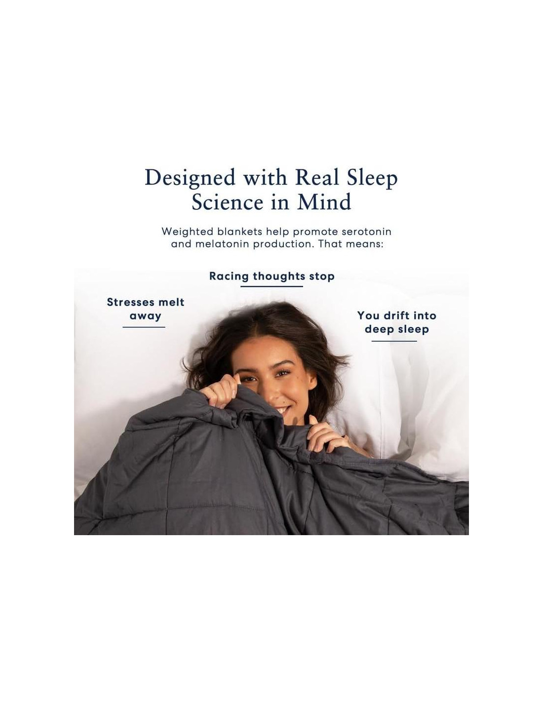 - Disponible en múltiples tamaños y pesos (Niño, Individual, Doble, Reina, Rey; 10-25 lbs). Para mayor comodidad, selecciona una manta que pese alrededor del 10% de tu peso corporal. No es adecuada para personas con dolor en las articulaciones o la espalda.
