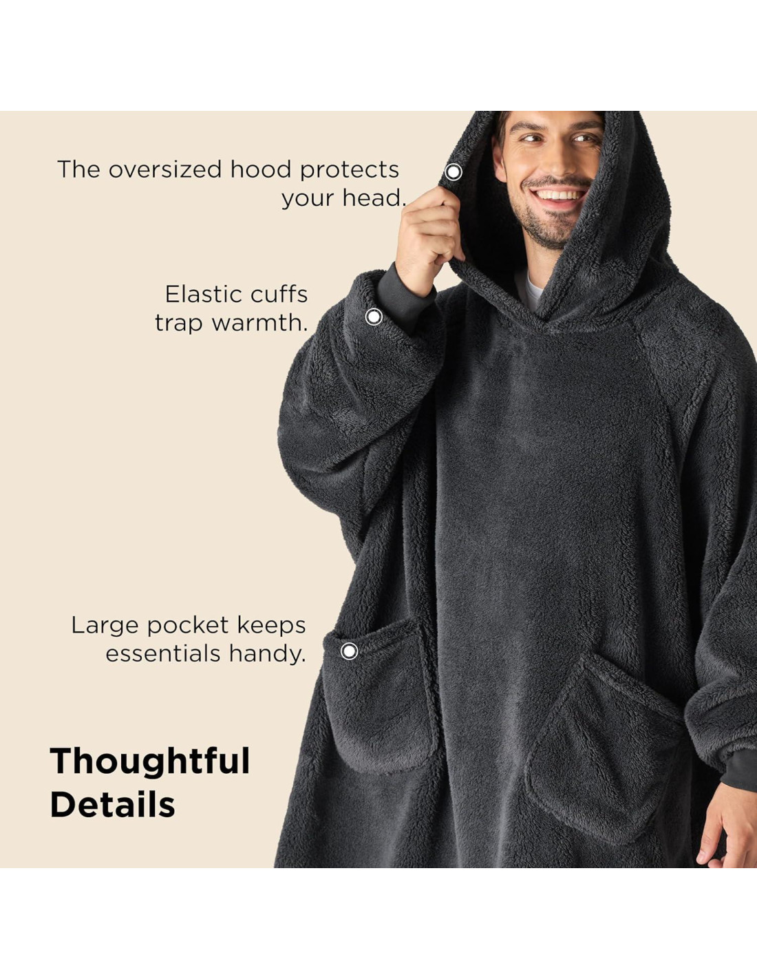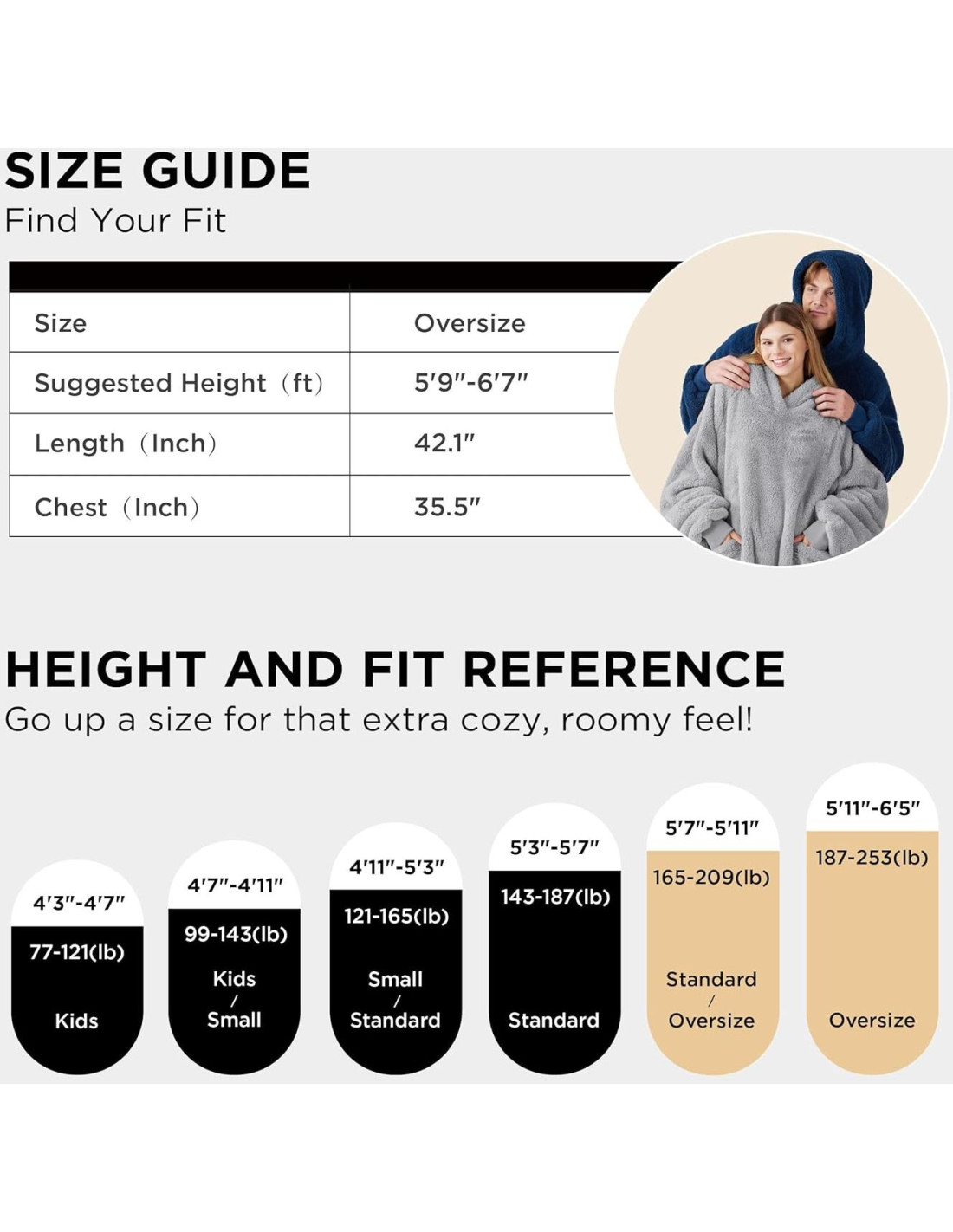 - Cálida y suave: nuestra manta con capucha es un 10% más esponjosa que la mayoría de los competidores, lo que la hace aún más suave y cálida. Con su tela de sherpa esponjosa y cálida de alta calidad, crea un abrazo acogedor e invitante, asegurando la máxima comodidad para el invierno.