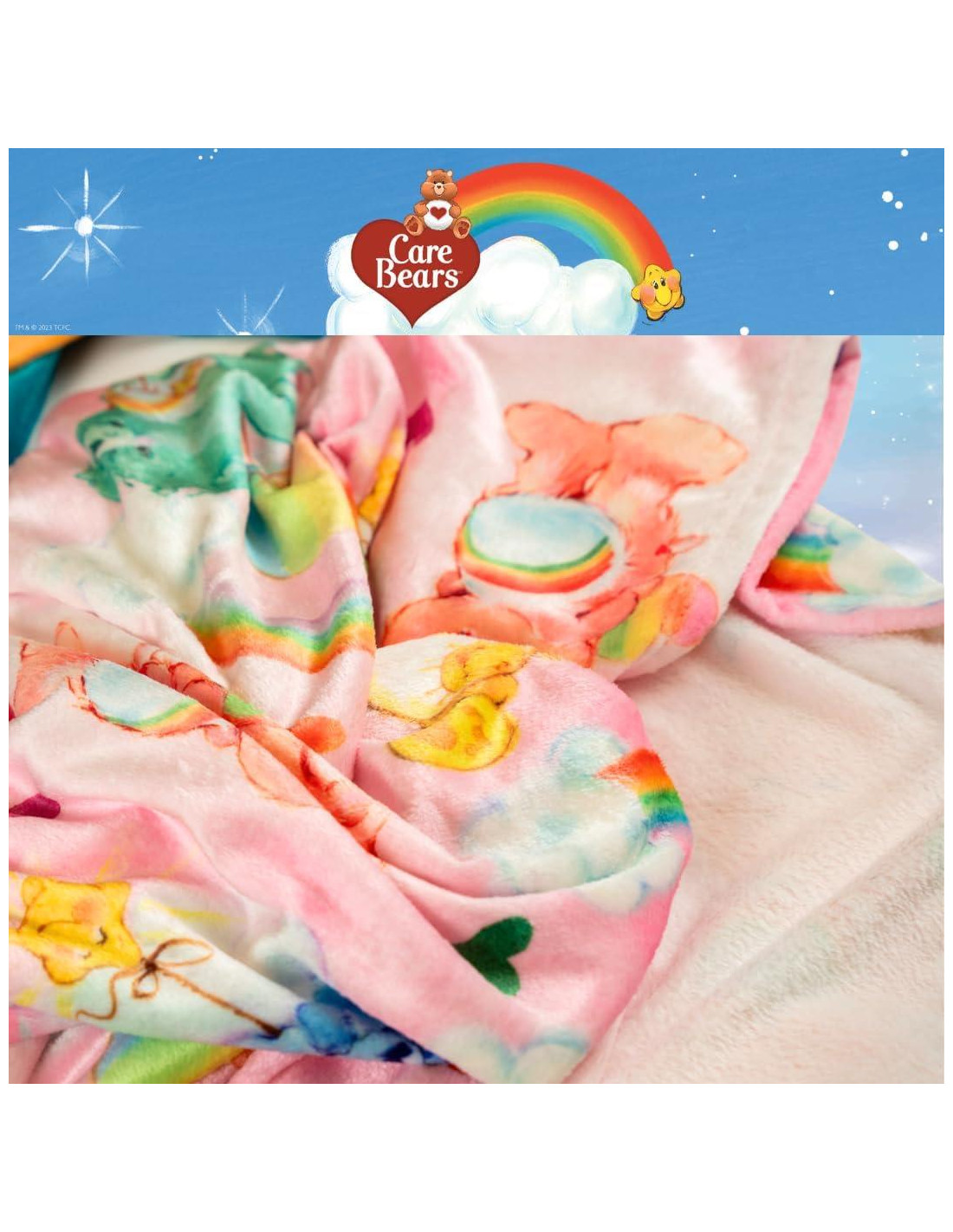 - DISEÑO DE CARE BEARS: ¡Difunde amor y felicidad con esta vibrante manta de Care Bears! Presentando a tus Care Bears favoritos bailando entre arcoíris y corazones sobre un suave fondo rosa, esta manta aporta un estallido de color y alegría a tus momentos acogedores. Perfecta para fanáticos de Care Bears de todas las edades, ¡envuélvete en calidez y deja que la magia de la amistad ilumine tu día!