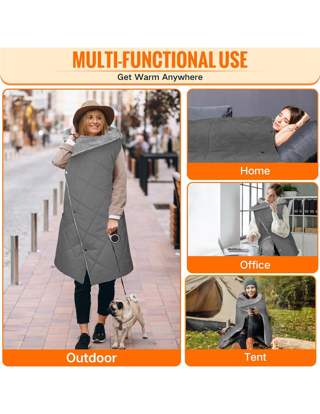 - MANTA ELÉCTRICA MULTIFUNCIONAL La manta calentada portátil calienta muy bien para las rodillas, puedes usarla como manta de cobertura mientras estás sentado/acostado, diseño de cierre a presión, convierte la manta en un chal calentado, también puede usarse como manta calentada para el automóvil y es fácilmente portable para viajar. Siempre que estés en casa o en la oficina, estadio, acampando, se puede doblar y usar a voluntad, siempre puedes sentirte cálido con ella. Es un gran regalo para familiares y amigos.