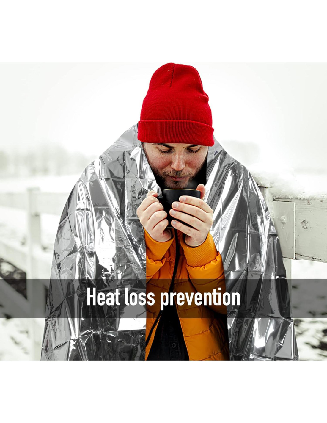 - USO DE EMERGENCIA - Perfecto para situaciones de emergencia donde se requiere calor o protección de todas las condiciones climáticas. Ayuda a prevenir la hipotermia y el shock al retener/reflejar hasta el 90% del calor corporal de un usuario