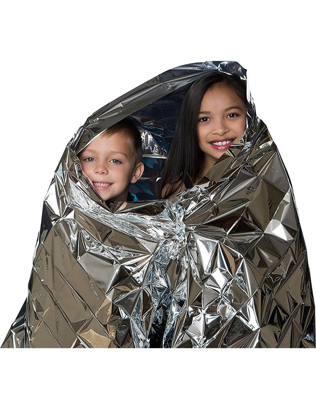 Manta Térmica de Emergencia de Papel de Aluminio Mantitas de Supervivencia manta de papel de aluminio de emergencia refugio de emergencia Senderismo Supervivencia Maratones o Primeros Auxilios. Tamaño de cada manta cuando está abierta - 129.54 cm x 210.82 cm, Peso: 56.7 g, Grosor: 12 micrones, Se adapta fácilmente a su kit de emergencia. Diseñada para reflejar / retener hasta el 90% de su calor corporal, ayuda a prevenir la hipotermia y el shock, proporciona protección conveniente y fácil en todos los estados de clima frío o cálido, Mantitas de Supervivencia Perfectas para Exteriores, Senderismo, Supervivencia, Maratones.