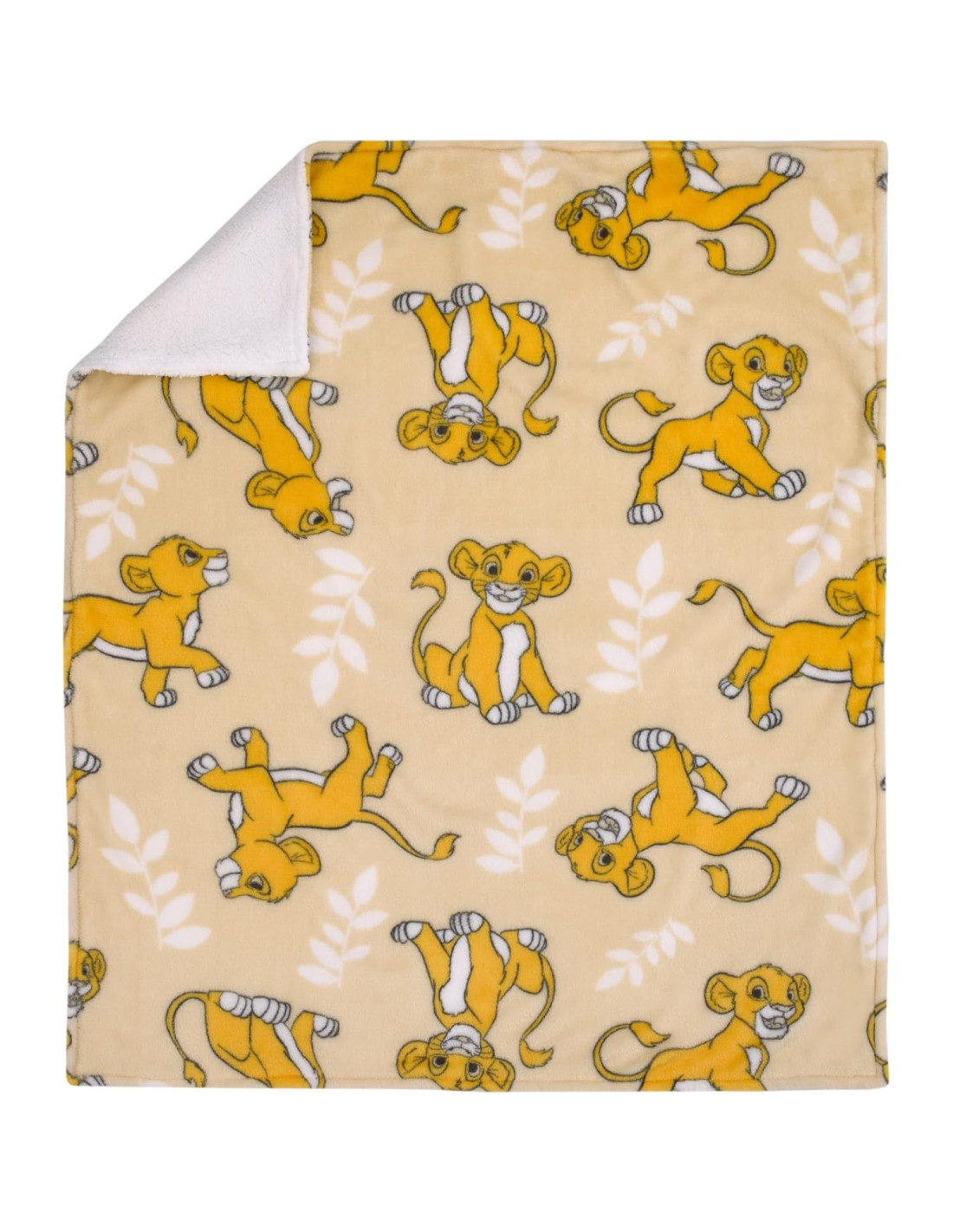 Simba está teniendo un tiempo rugiente en esta aventurera Manta de Bebé Sherpa de Disney Rey León. Hecha de telas de felpa súper suaves. Presenta un patrón de Simba con hojas de jungla en suaves tonos de tan, beige y blanco; se invierte a una parte trasera de sherpa blanca. Esta manta de bebé mide 76.2 cm x 91.4 cm; ¡tamaño perfecto para acurrucarse, usar en el carrito, viajar en el auto y genial para bebés y mamás en movimiento! ¡Es un regalo maravilloso!