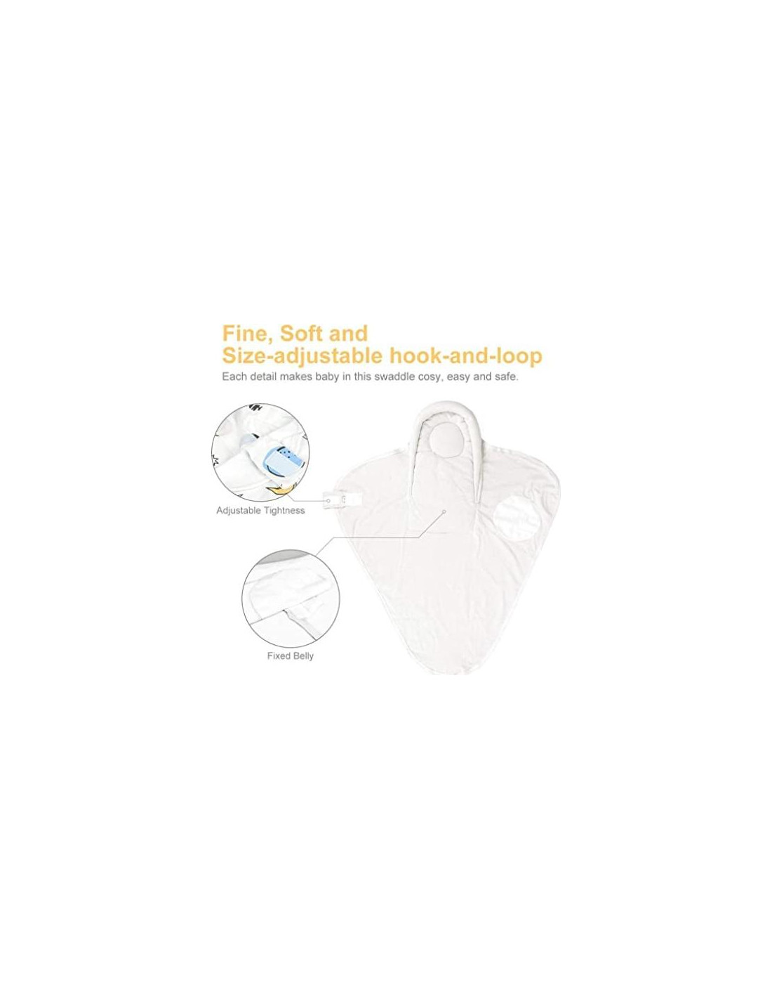 - Materiales de Alta Calidad - el material principal de nuestra manta de envoltura es algodón peinado, cuya textura y durabilidad son mejores que el algodón normal; El gancho y la cinta están especialmente diseñados para bebés recién nacidos, muy suaves y cómodos para el bebé.