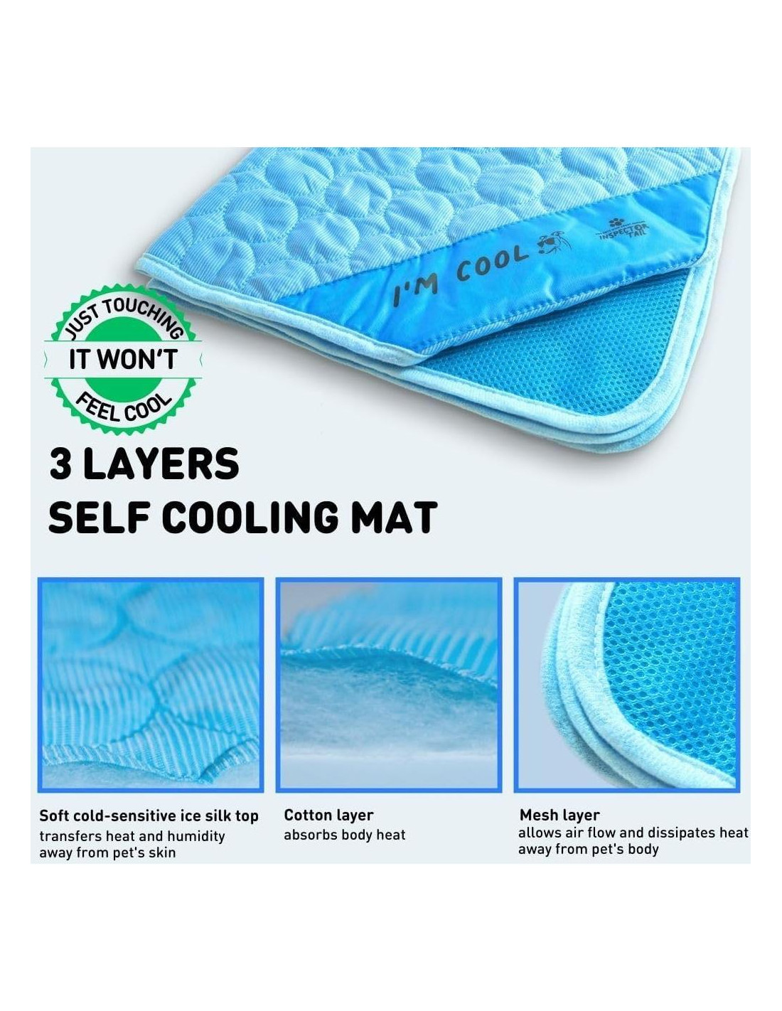 - NO SENTIRÁS EL EFECTO REFRIGERANTE AL TACTO | FUNCIONA A TRAVÉS DE LA TRANSFERENCIA DE CALOR | AUTOCALENTABLE con 3 Capas - 1. cuando las mascotas descansan sobre la manta, la suave capa de seda fría sensible al frío transfiere el calor y la humedad lejos de la piel de la mascota; 2. el algodón interno absorbe el calor corporal; 3. la parte inferior de malla promueve una mejor circulación de aire dispersando el calor corporal lejos de la mascota | No requiere congelación, agua o electricidad