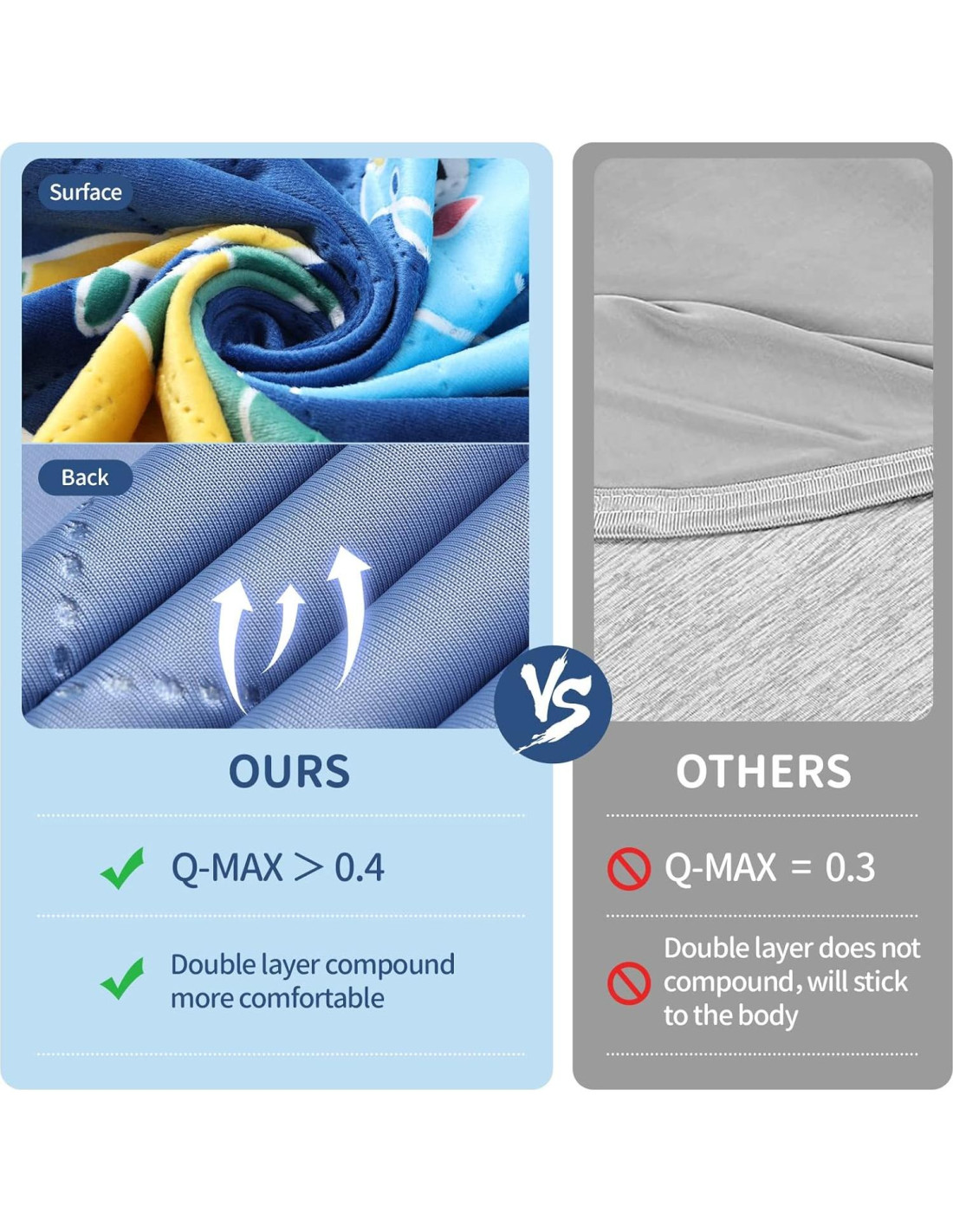 - [Manta Refrigerante]: Nuestras mantas refrigerantes que brillan en la oscuridad para dormilones calientes utilizan fibra de refrigeración japonesa arch-chill (Q-MAX>0.4), que puede absorber el calor corporal de manera excelente. Mantiene a los niños frescos toda la noche, incluso en clima cálido y caluroso de verano.