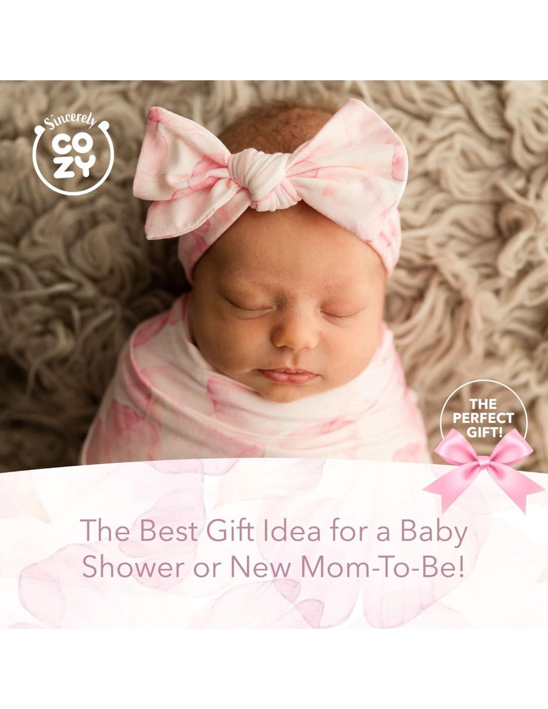 - Juego de manta de arrullo para bebés: Hecho de un lujoso rayón de bambú mejorado con un toque de spandex, nuestros gorros/cintas de cabeza de rayón de bambú y mantas de rayón de bambú son transpirables, suaves como la mantequilla y hipoalergénicas
