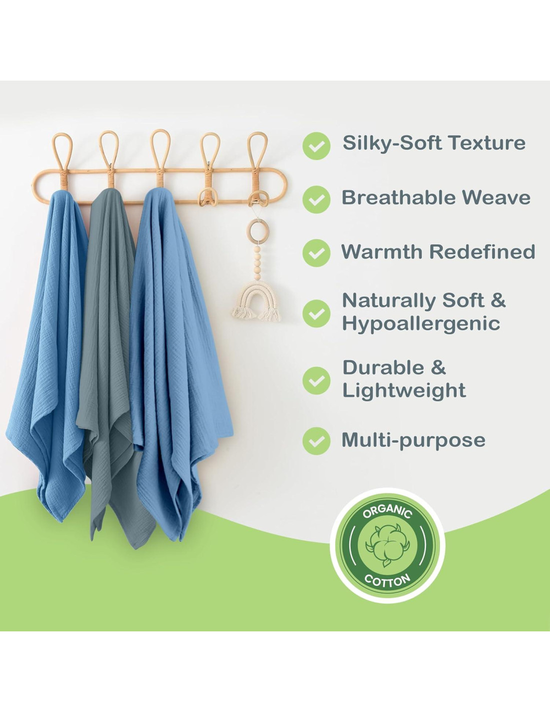 - Manta de muselina para bebés: Nuestro paquete de mantas de muselina está hecho de algodón orgánico, proporcionando un toque suave y transpirable para la piel delicada. Ideal para mantas de arrullo para bebés niños y niñas, estas mantas reducen el riesgo de irritación de la piel y alergias.