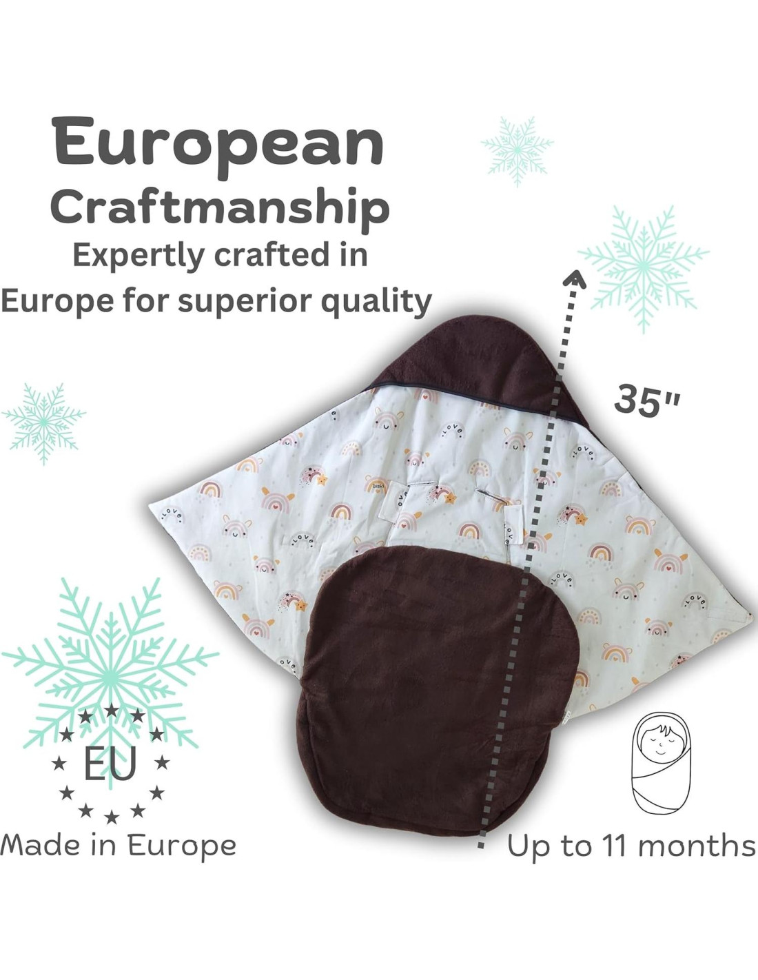 - - Conveniente: Fácil de usar, la manta se coloca simplemente en una cuna o asiento de coche, los cinturones se pasan por las ranuras, luego solo tienes que poner al bebé y cubrirlo; No es molesto poner chaquetas gruesas, pero el bebé se mantiene caliente y cómodo en su cuna; También puede usarse como alternativa a un saco de pies; Ajustable con cierres de Velcro