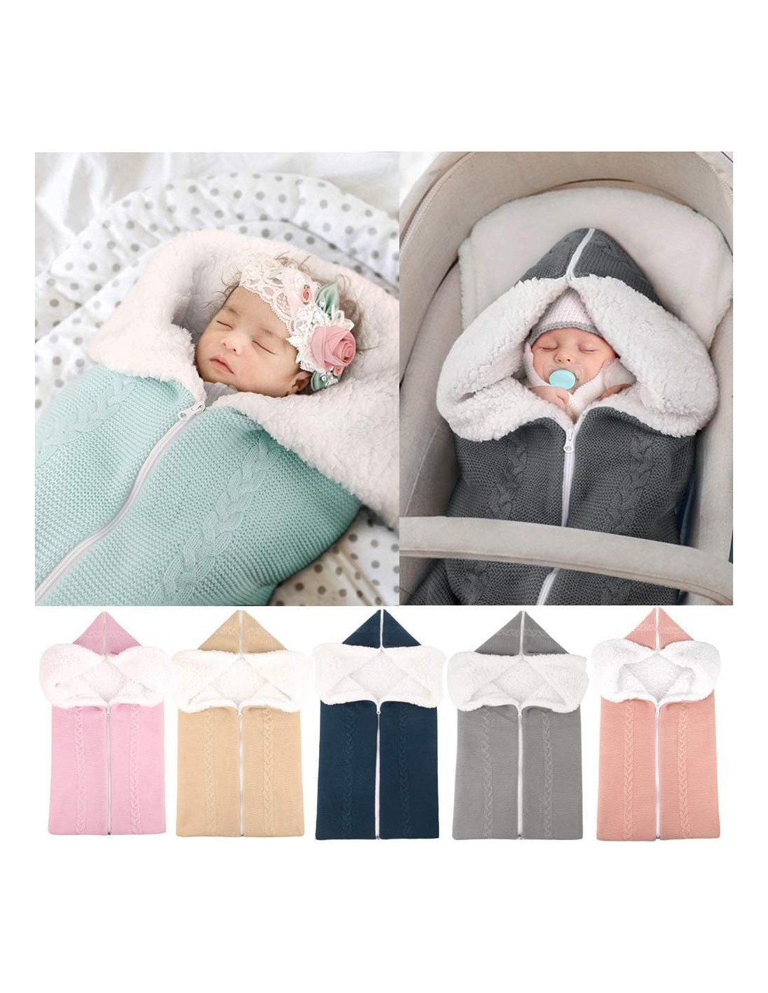 - FORRO DE PUNTO Y TERCIOPLO - Hecha de acrílico transpirable, terciopelo amigable con la piel como forro, súper suave y amigable para el bebé, ofrece un ambiente cálido y acogedor para que el bebé duerma con tranquilidad.