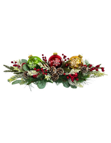 - Una pieza atemporal para tradiciones anuales: fabricado con materiales de alta calidad, desde los adornos con efecto de vidrio agrietado hasta la vegetación realista, este centro de mesa está diseñado para durar. Guárdalo de forma segura después de las fiestas y hazlo una parte apreciada de las celebraciones familiares durante años.