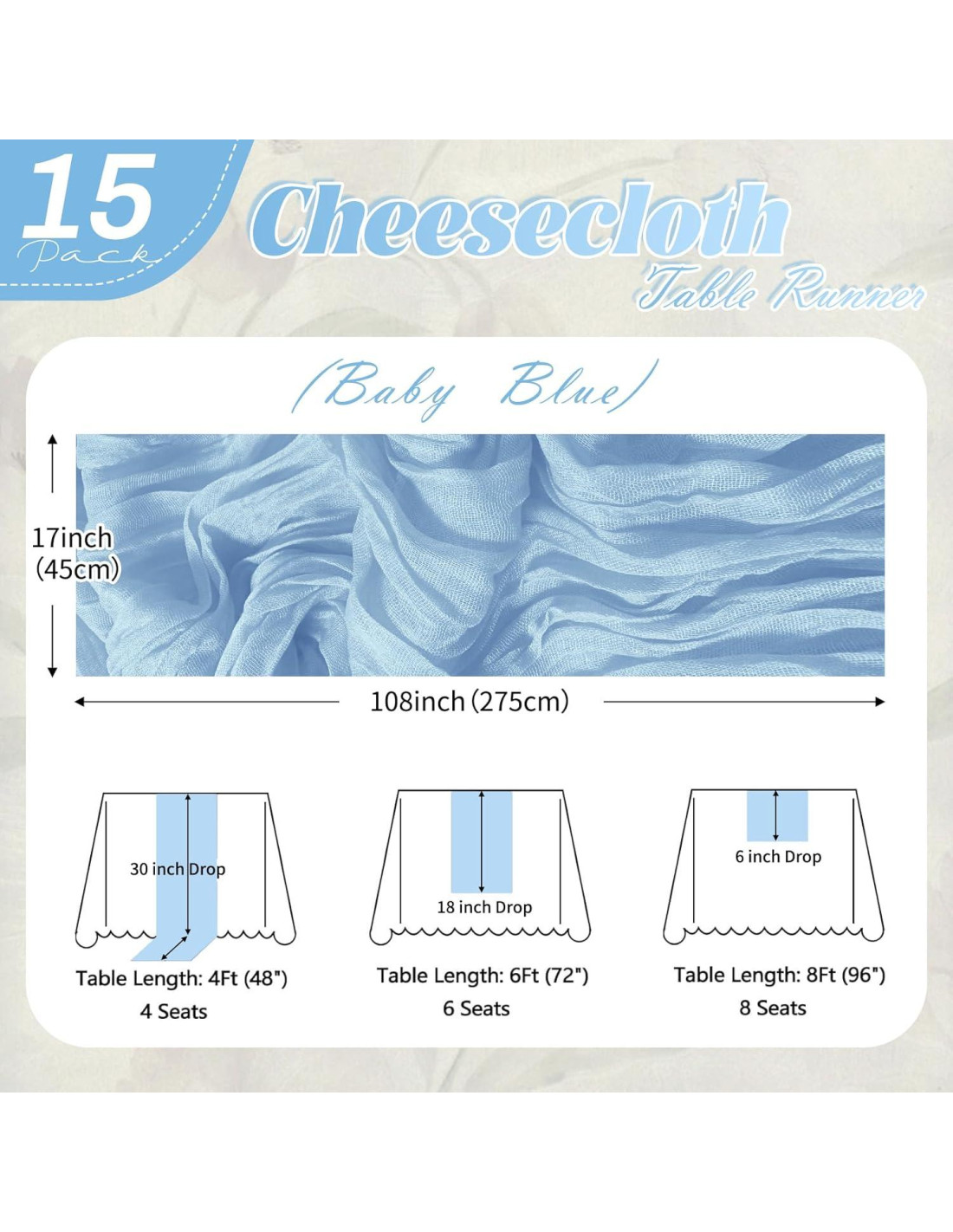 - Paquete incluido: Recibirás 15 manteles de gasa azul bebé, suficientes para satisfacer tus necesidades diarias de uso y reemplazo. El tamaño de cada mantel de gasa es de aproximadamente 43 x 274 cm, lo suficientemente largo para adaptarse a mesas y sillas de diferentes tamaños. Una variedad de colores para elegir, perfecto para bodas y fiestas, añadiendo una atmósfera romántica a tu ocasión