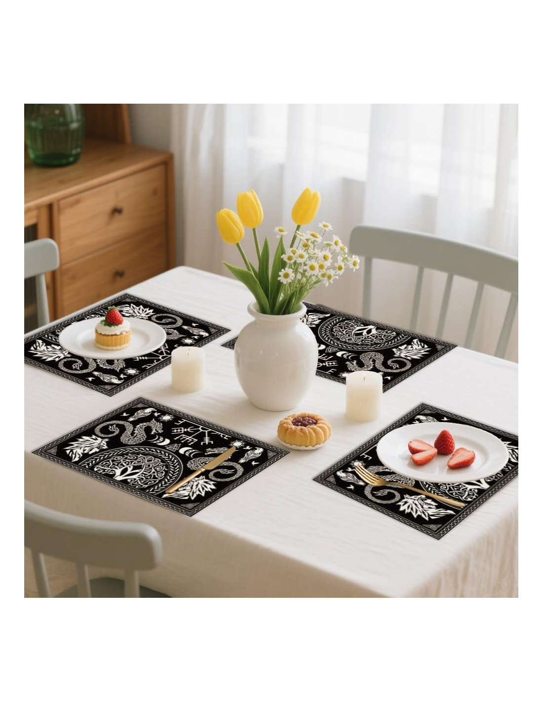 - Juego de Manteles: recibirás 6 manteles de runas celtas de aproximadamente 45cm de largo y 30cm de ancho, mejor combinados con tu mesa y brindándote una experiencia de comedor agradable. POR FAVOR MIDE TU MESA PARA UN AJUSTE PERFECTO ANTES DE COMPRAR.