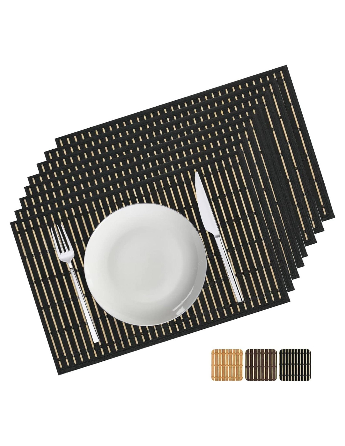 - [TAMAÑO Y MATERIAL] Cada mantel es 17.7"X11.8"(45cmX30cm), juego de 8, hecho de bambú 100% natural, pulido suave, ecológico, lavable, reutilizable. El mantel está hecho de palos de bambú redondos y tablones de bambú, y tiene un borde de tela en el borde.