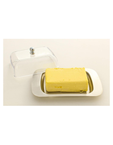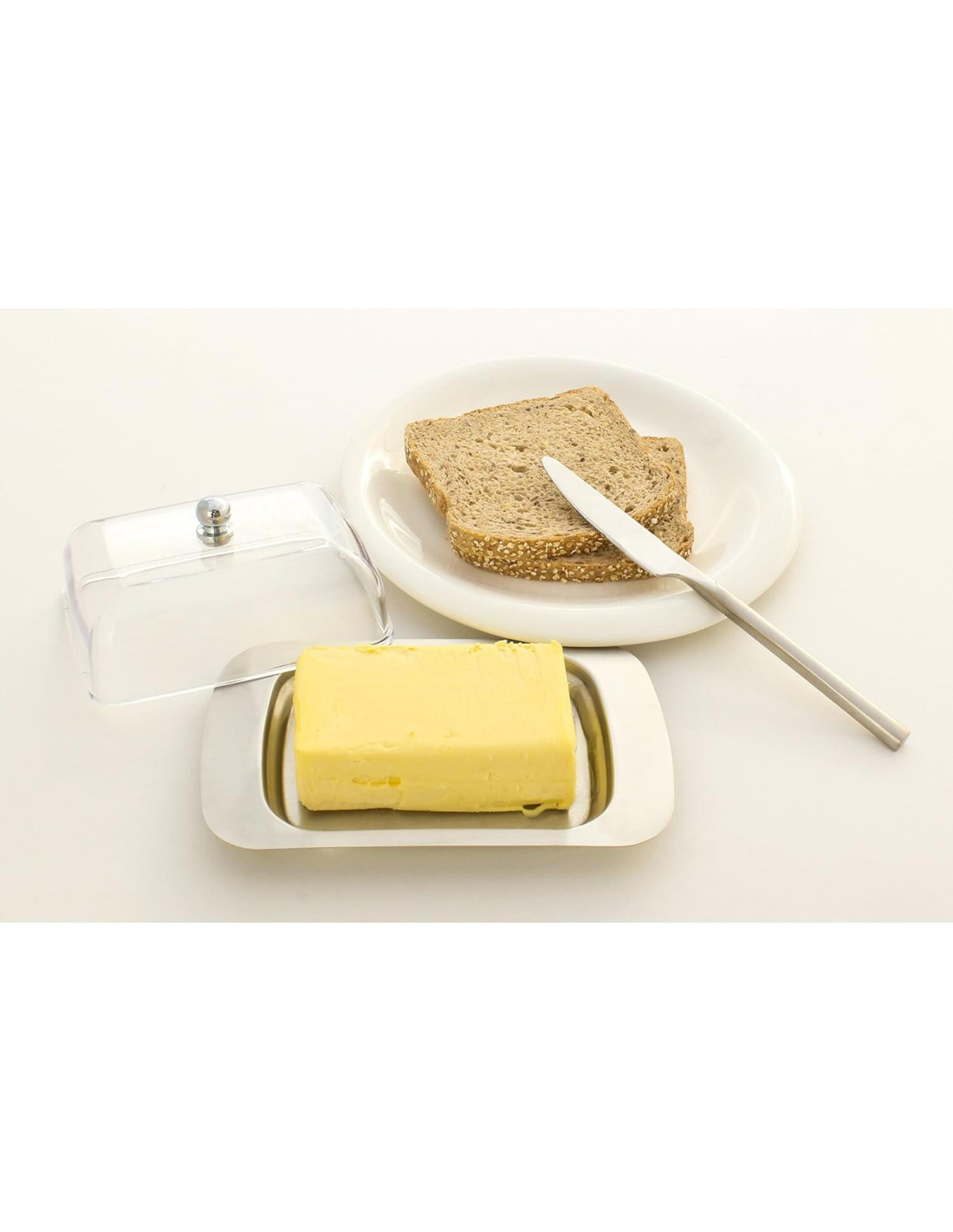 Tamaño generoso que se adapta a 2 barras de mantequilla americana, un bloque de queso crema o mantequilla europea como Kerrygold. Acero inoxidable cepillado elegante con acabado satinado. Diseño elegante que va directamente del refrigerador a cualquier mesa de cena.