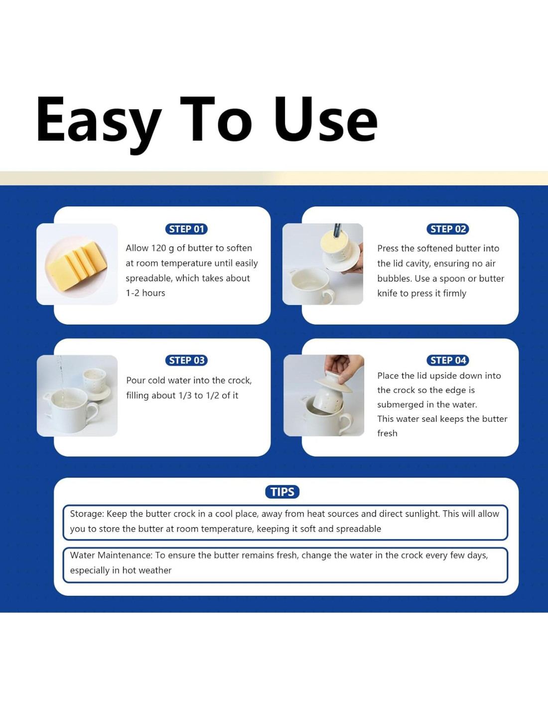 - Tamaño Perfecto y Versatilidad Capacidad para 120g de mantequilla en un diseño compacto de 4.3x7 pulgadas (10.9x17.8 cm). Ideal para desayunos familiares, tardes de repostería o almacenamiento elegante en la encimera.